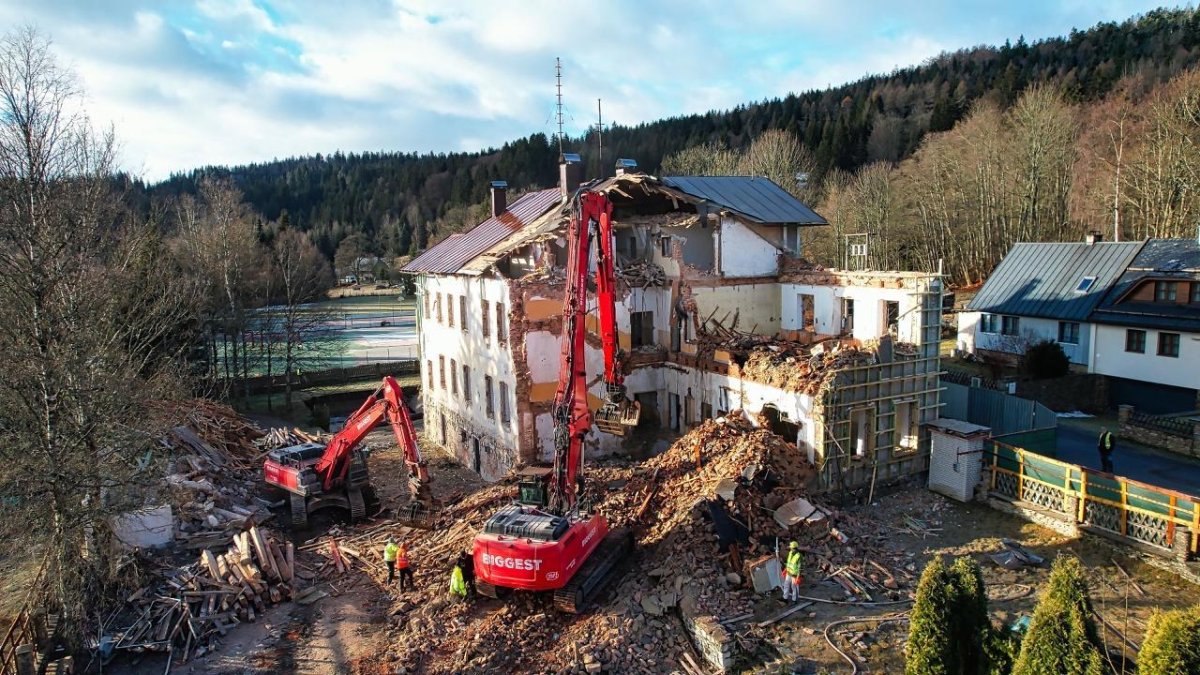 Demolition of the original building has been completed. Historically the building served as a school, during socialism it was a military company. After the revolution it was only partly used by the Police of the Czech Republic. The state was not interested in the property and so the building passed into private hands. The owner set up accommodation of a more modest nature. Now a completely new era is dawning. The Laka Living project is coming to fruition.