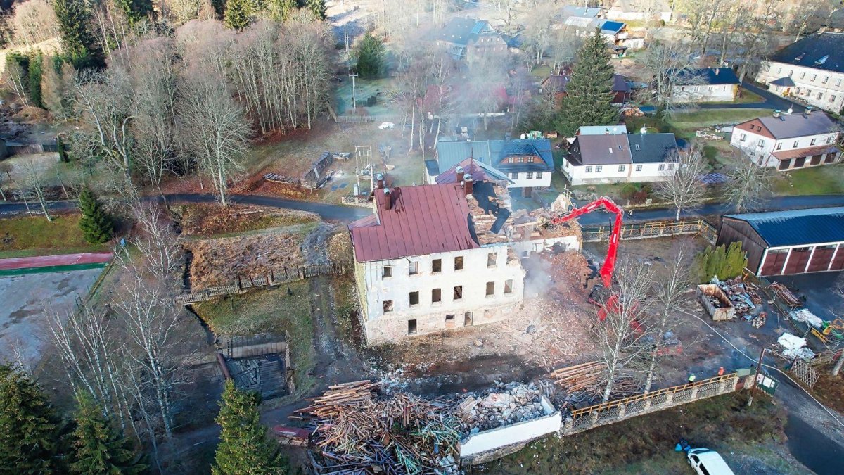 The original structure has already been removed, the remaining building material is currently being processed and preparations for excavation of the pit are underway.