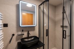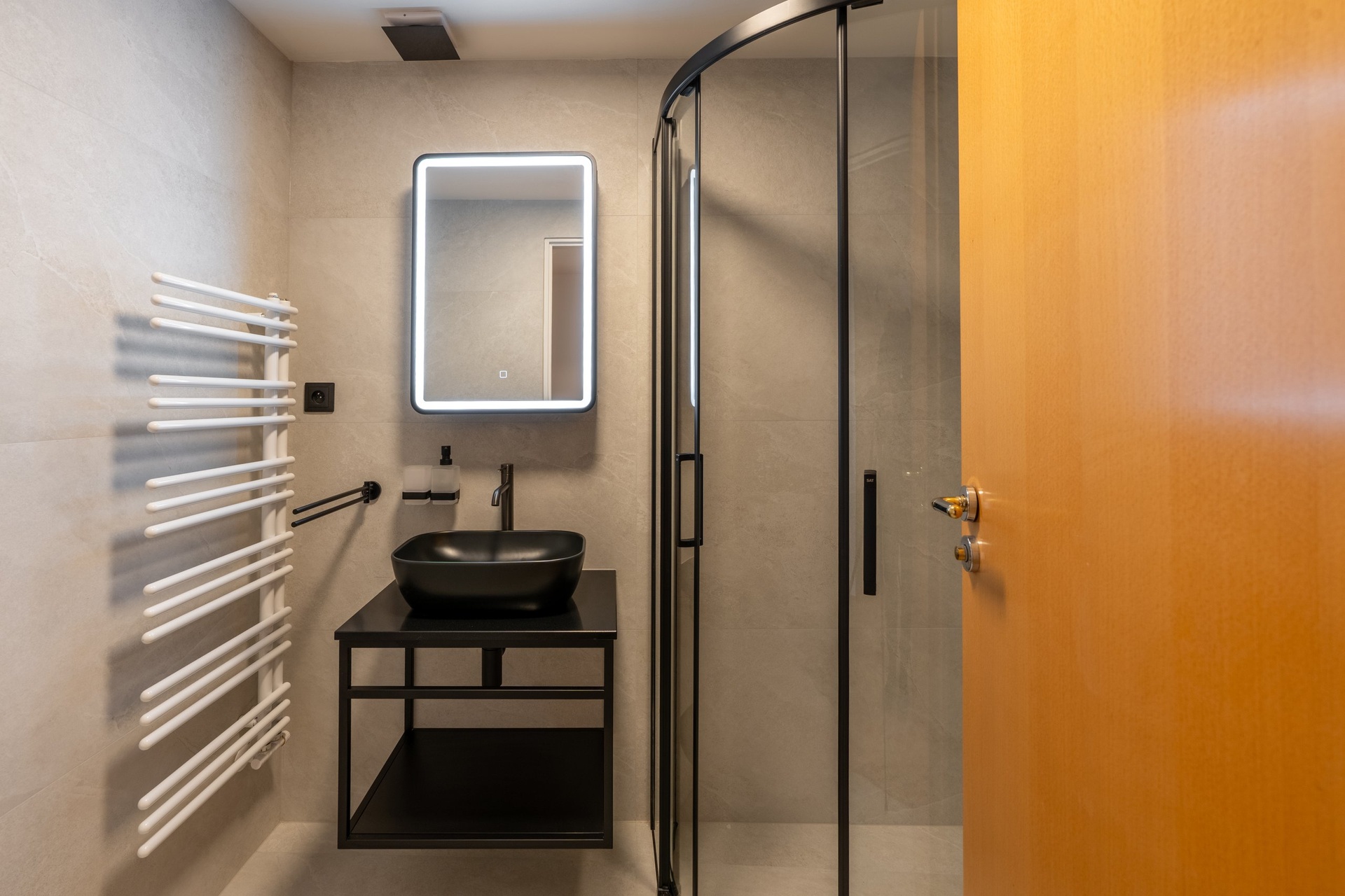 The floors are wooden parquet, of course there are security doors and a private boiler. The equipment also includes antique furniture. The bathroom and toilet are newly renovated to a high standard. The apartment is air-conditioned and the windows are equipped with remote-controlled external blinds.
