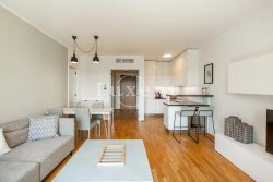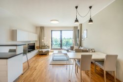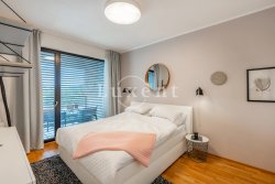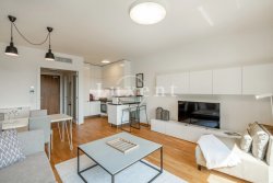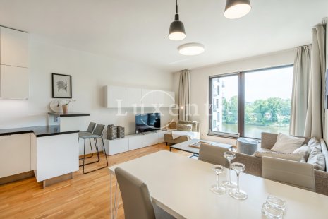 We offer to rent a beautiful and completely furnished apartment 2+kt with a usable area of 60 sqm in new Marina Island residence, Prague 7 - Holešovice. The apartment is situated on the 8th floor of a residential project with a lift, a terrace with a view of the Vltava River and a garage space, which is included in the price. The apartment has a balcony of 5 sqm.