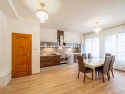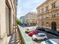 We offer for rent a spacious apartment 3+1 with balcony of usable size of 103 sqm in a sought-after location in Prague 1. The apartment is situated on the 2nd floor of a representative functionalist apartment building with a beautiful renovated entrance and elevator. The apartment is partially renovated - new floating floors, renovated kitchen with new appliances.