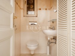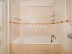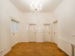 The kitchen is equipped with a ceramic hob, convection oven, and dishwasher. The flat provides a washing machine and a storage room for food or household needs. There are parquet floors, large windows, and high ceilings, which give the space airiness and a bright feeling. The apartment has a spacious cellar.