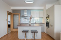 We offer for rent a very nice apartment 3+kt with terrace and balcony with a total area of 84 sqm in the residence Slunečný vršek, Prague - Hostivař. The apartment is situated on the 6th floor of a residential project with elevator. A larger garage space can be rented for an additional fee.