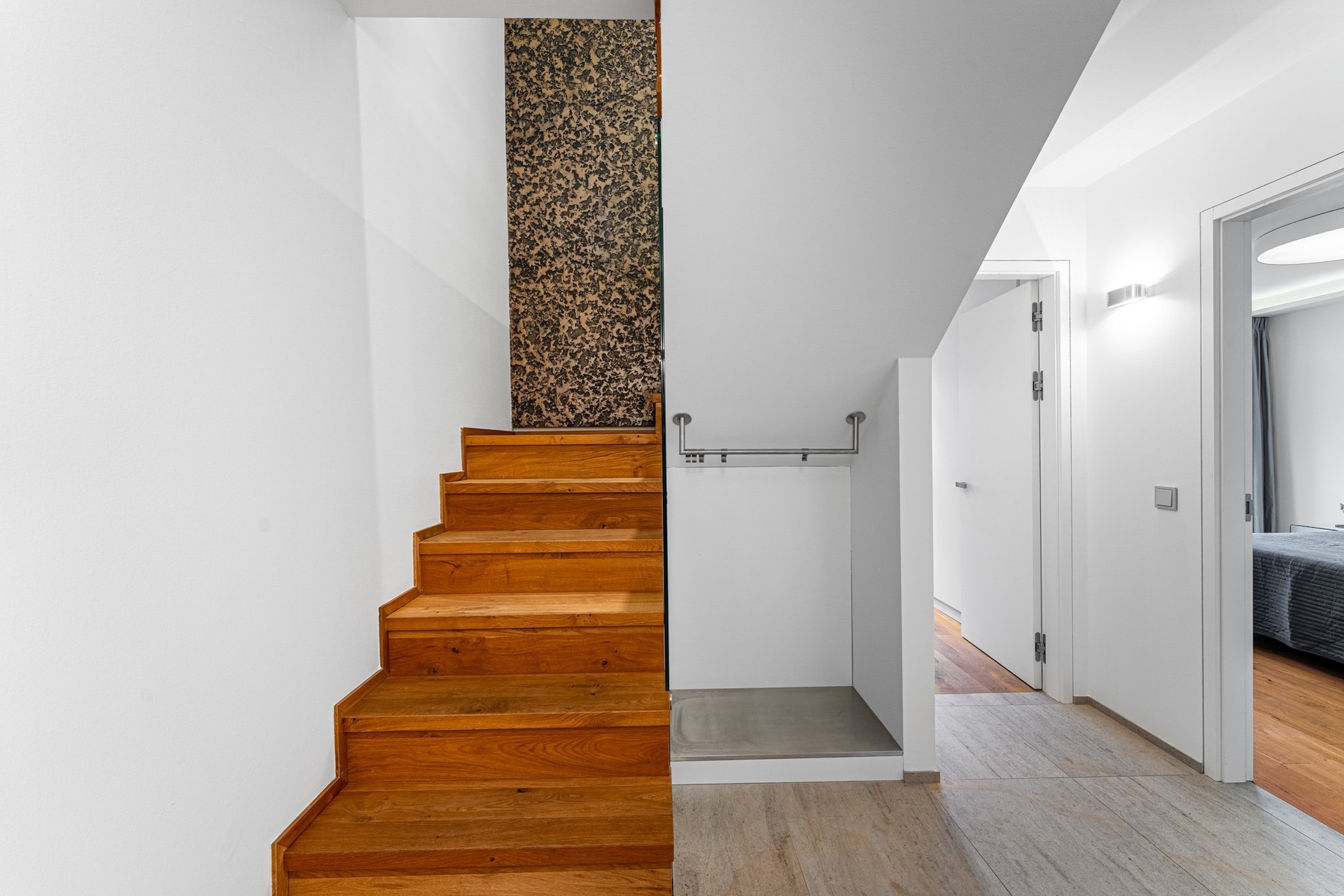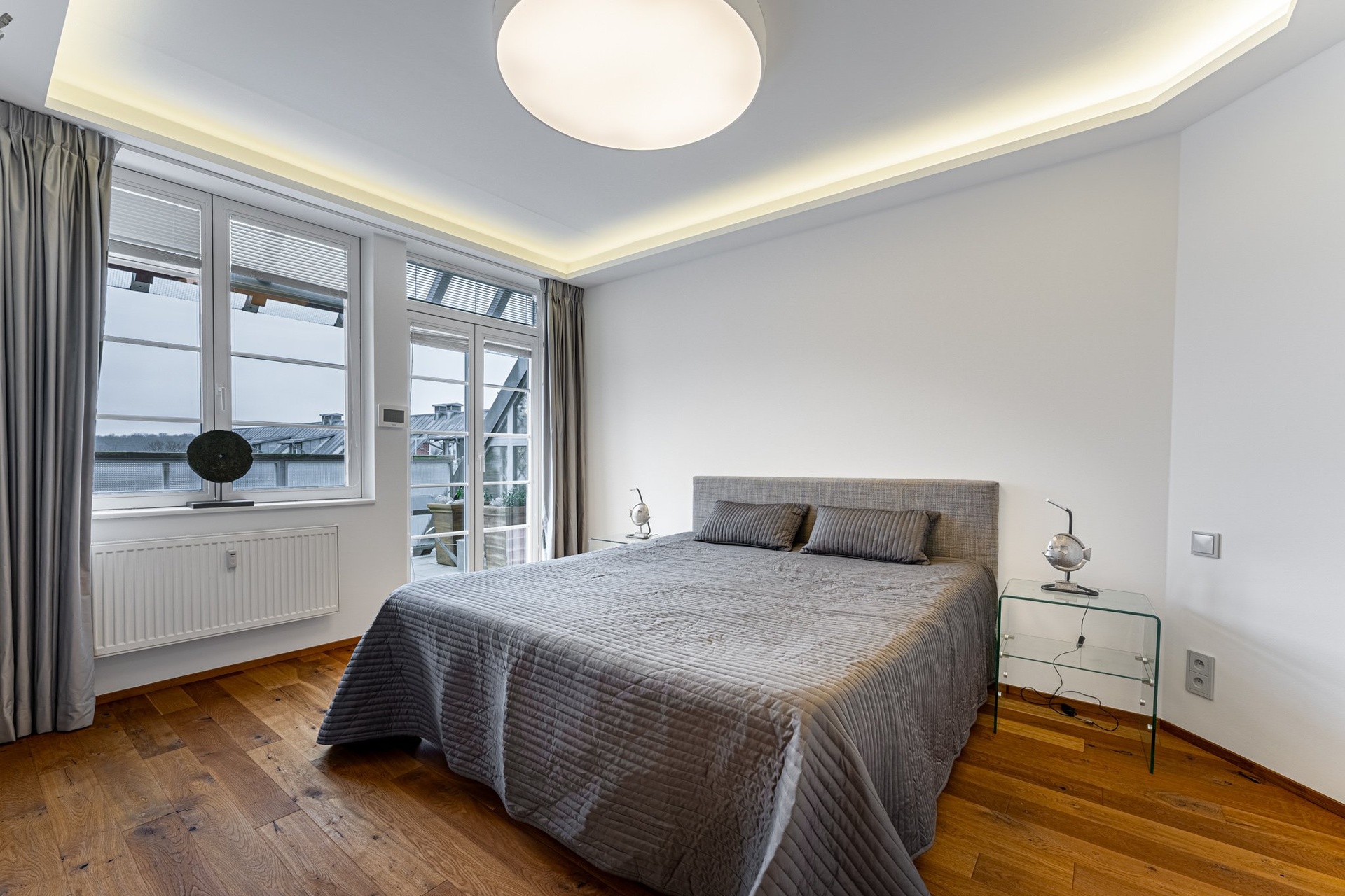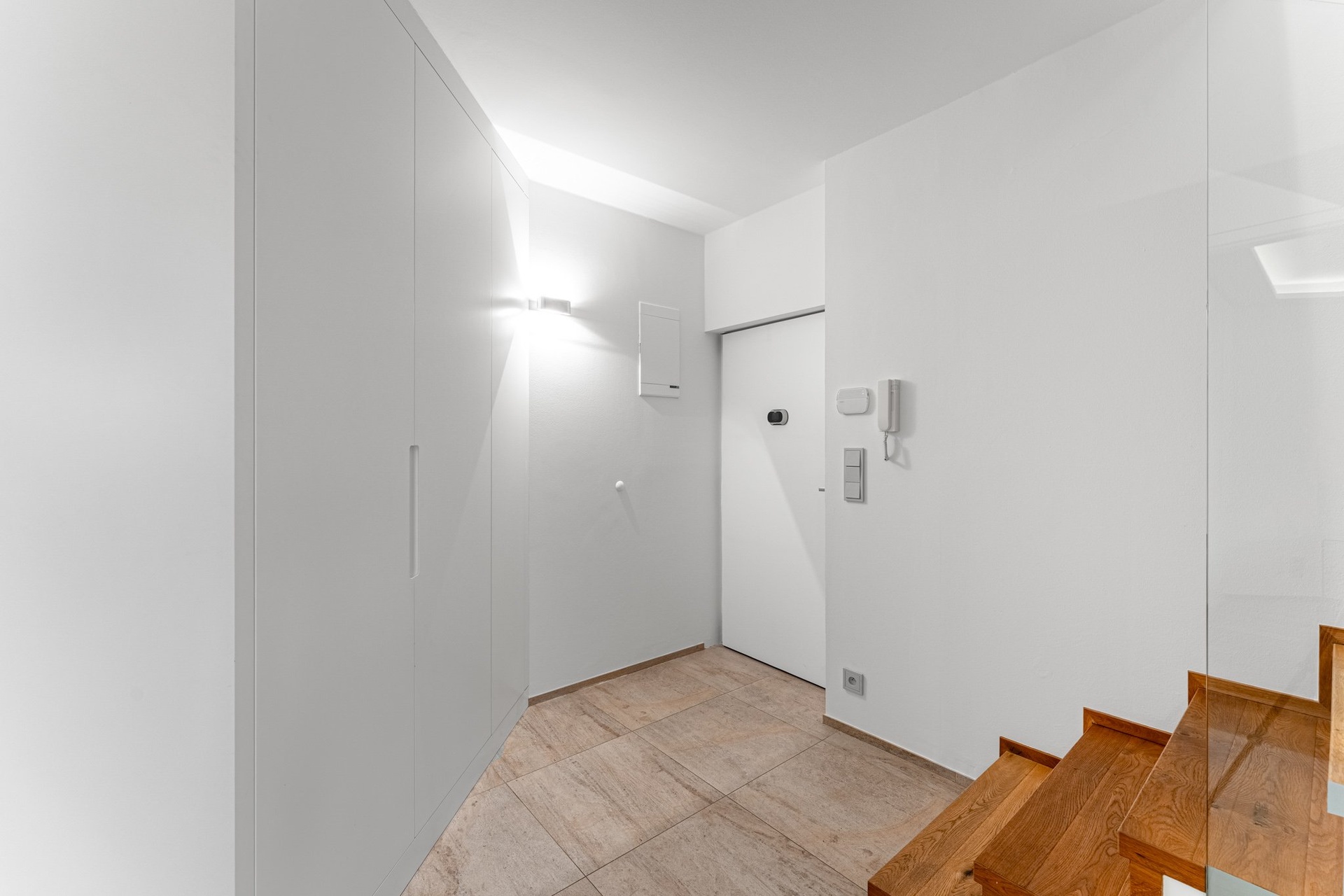The apartment is equipped with a Loxone system (smart home control), is fully secured, and has an alarm. The entrance door is a NEXT type. All rooms have oak floors, and the hall has large-format tiles.