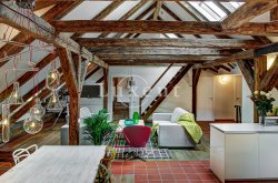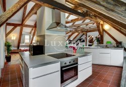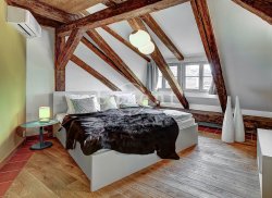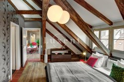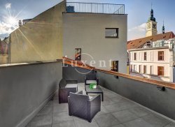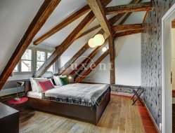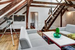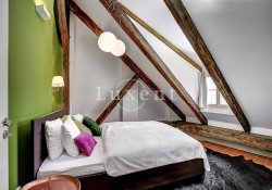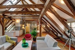 We offer for rent a modern apartment 4+kt with a living area of 141 sqm, which lays over the entire floor. Fully furnished rooftop apartment with beautiful beams is located on the fourth floor of the house in the Old Town, just few steps from Old Town Square and Municipal House.