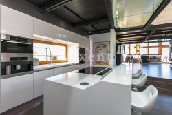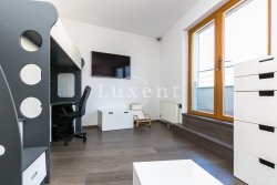 We offer for rent an impressive and luxuriously furnished apartment with living area of 210 sqm. The apartment has two terraces total of 230 sqm with spectacular views of the Prokop Valley. It located on the last floor of a new building with an elevator, which is situated in a quiet residential area of Barrandov. The flat includes an entrance hall, three bedrooms, two bathrooms with toilets and a separate toilet. Spacious living room with dining area, fully equipped kitchen and bar. From the living room a staircase leads to the gallery with a double bed, TV, dressing room and study. The interior complements the many works of art and sculptures.