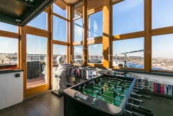 One of the terraces faces north, it includes a gym, shower, a solarium and jacuzzi. The second terrace is facing south and there is a seating area with a summer kitchen and barbecue.