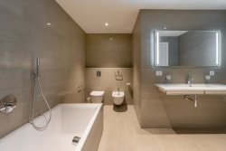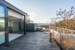 On the upper floor of the duplex there is a private sauna with a separate shower and toilet, a terrace with panoramic views of the surrounding area and a garden.