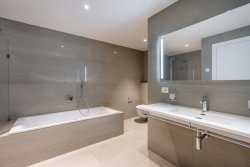 High-quality materials were used in the project. Solid wood floors. Large-format tiles in the bathrooms. Underfloor heating throughout the apartment. French windows with sound insulation ensuring peace and quiet as well as excessive lighting. Each room has its own access to the terrace with a view.