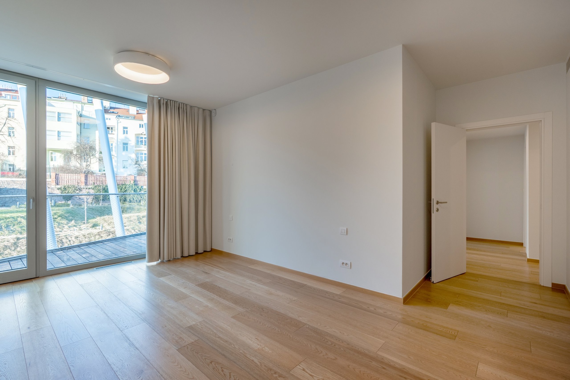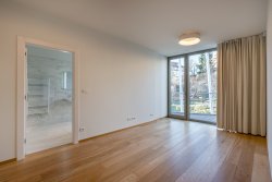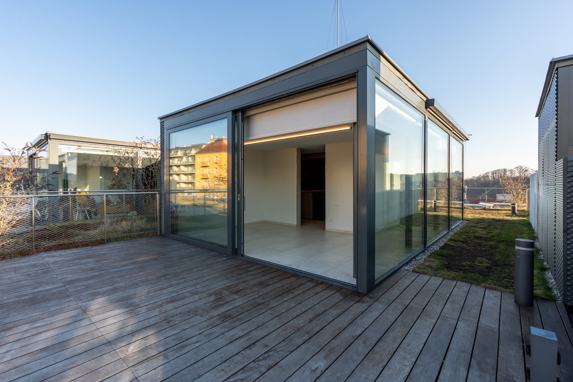 We offer for rent a spacious 4+kk duplex penthouse with a usable area of 212 sqm with three terraces on the 6th and 7th floors of a new residential project with an elevator and a number of above-standard additional services such as a reception, swimming pool, wellness center, and a large shared garden in an enclosed courtyard. The apartment comes with a cellar, and a parking space in the underground garage can be rented for an additional fee.