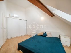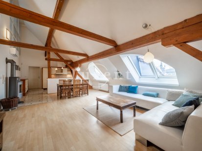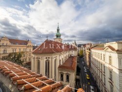 We offer for rent a fully furnished two-storey bright duplex apartment of 5+kt with a usable area of 206 sqm on the 5th floor of a renovated historic apartment building with elevator in Prague 1, Old Town.