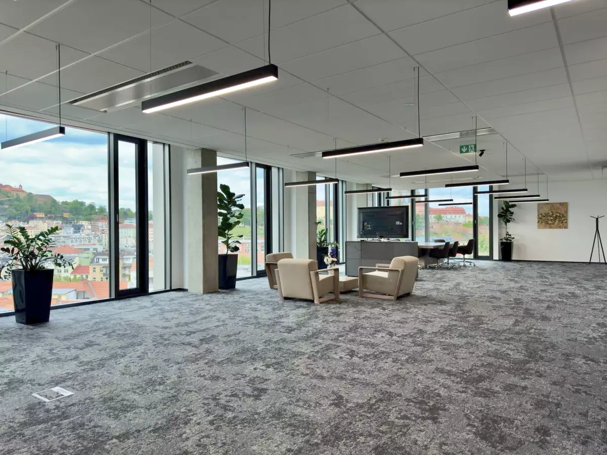 We offer office spaces for rent in the center of Brno, with excellent accessibility by both public transportation and car. The spaces offer flexible layouts with the option to choose an area up to 1,500 m², and are ready in a high-standard open-space design. The space can also be further customized according to the tenant’s individual requirements.