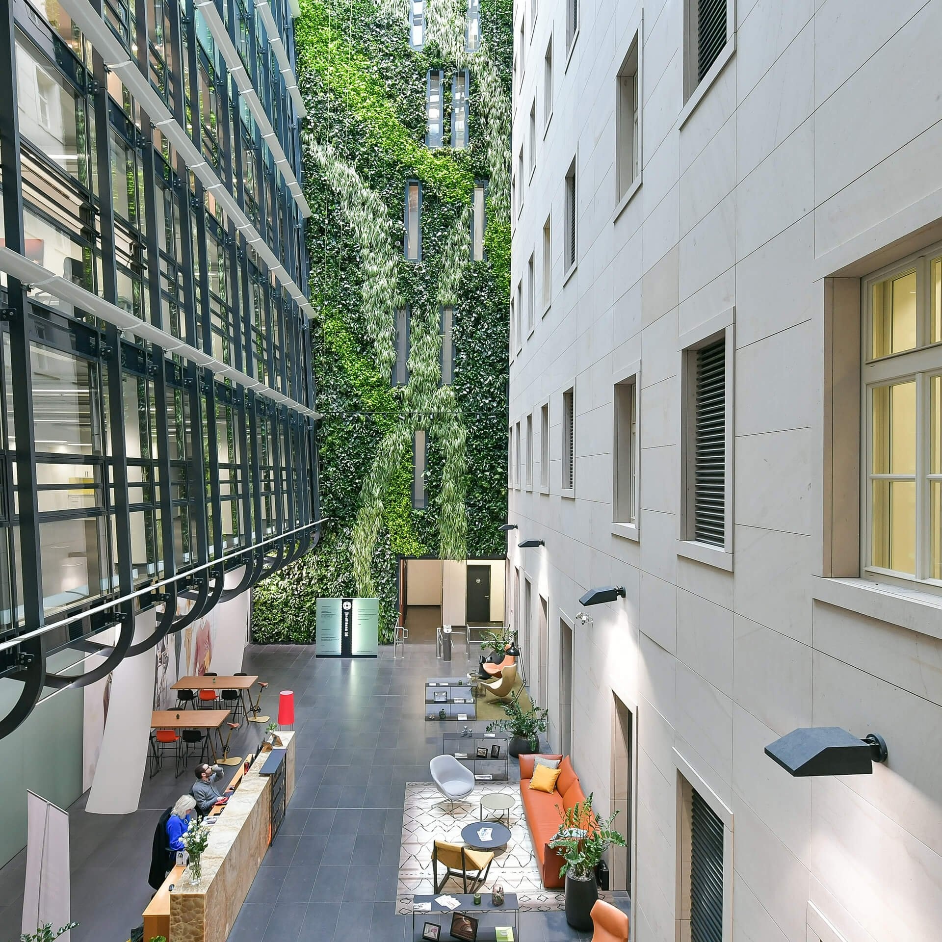 The individual floors offer office space of up to 1000 sqm. The building is LEED GOLD certified and features an exclusive vertical garden room with over 5,000 live plants.