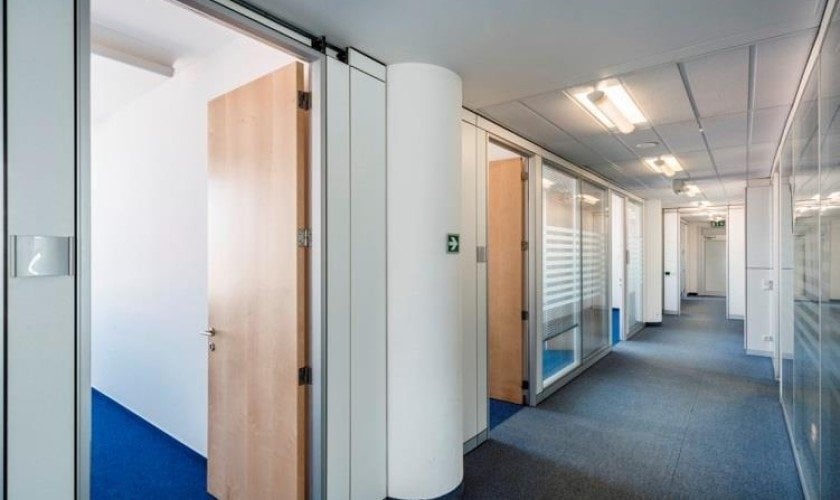 The unit is equipped with air conditioning, heating, carpeting, security equipment, modern lighting, electricity connections and internet connection. Toilets are shared in the corridor and on each floor. The interiors are spacious and well-lit, creating an ideal working environment for your employees.