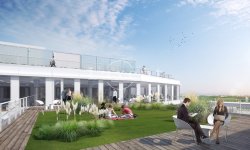 This project offers a wide range of services not only to tenants but also to the local community. A multifunctional playground and an open air cinema can be found in the public garden behind the building, with a café-restaurant. For its tenants, it will provide a wealth of benefits including a healthy and flexible working environment, a playful design with innovative features, breathtaking views and terraces, excellent visibility, or an unprecedented runway on the roof of the building. Elements and technologies that contribute to sustainable development are supported by LEED Platinum certification.