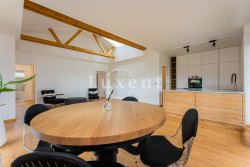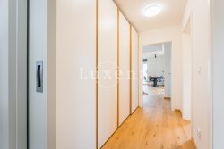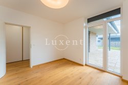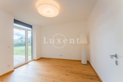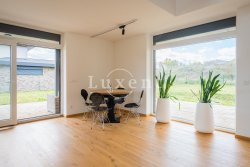 The layout of the house includes an entrance hall with built-in wardrobe, airy, sunny and spacious living-dining room and a luxurious custom-made kitchen with marble worktop, kitchen fully equipped with built-in appliances - fridge-freezer, oven, microwave and dishwasher, hob with extractor hood. The kitchen has an entrance to the utility room with gas boiler, which can also be used as a pantry. The living room has large French windows and access to the garden with outdoor seating.