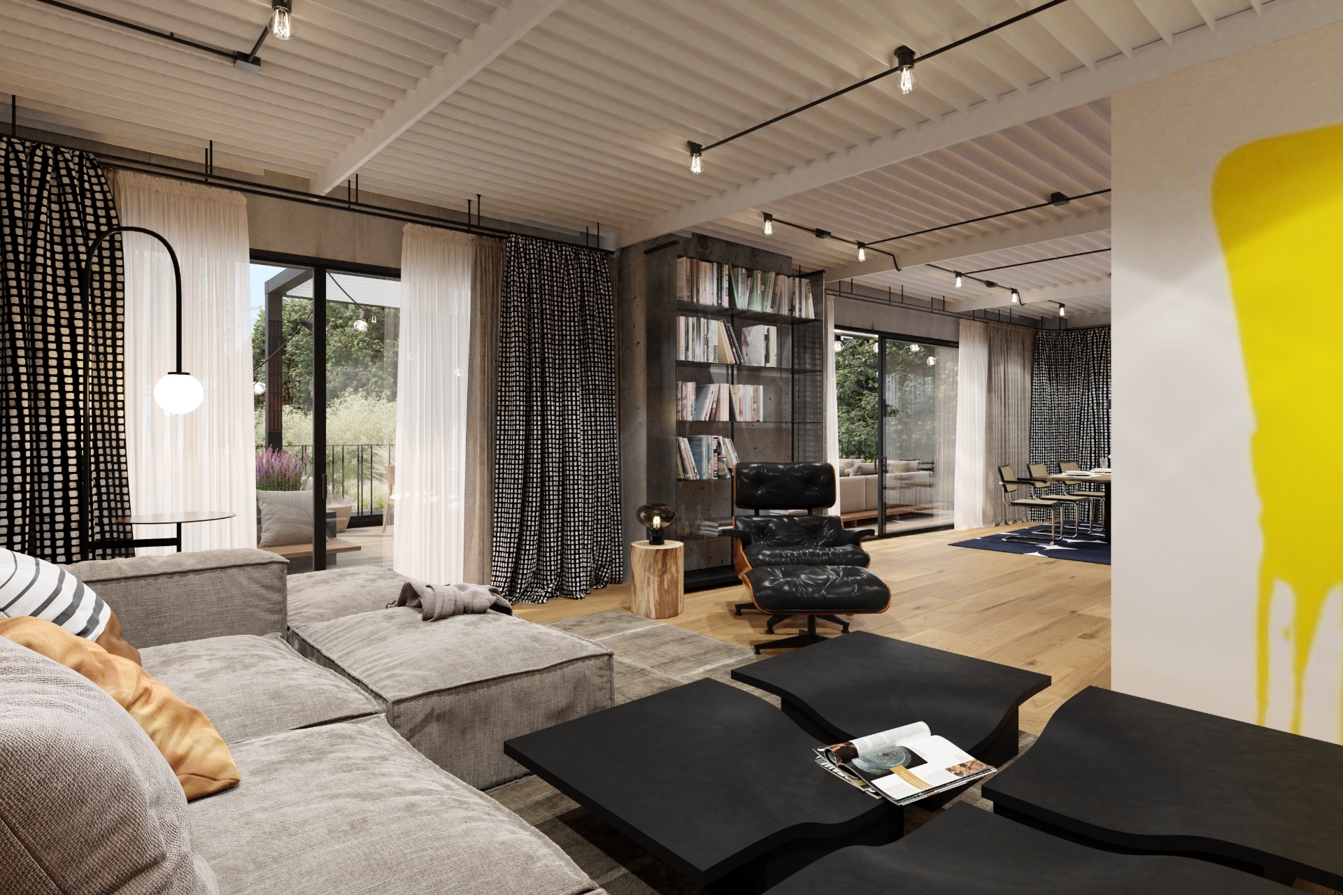 In a quiet green area of Prague 5 near Dívčí hrady, just a minute walk from the metro station B - Radlická, in the vicinity of the swimming pool, swimming pool and tennis courts, a new timeless residence in industrial style is being built.