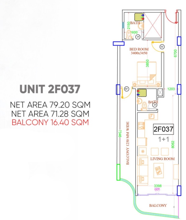 The apartment has a spacious bedroom with its own access to the balcony. The living room is connected to the kitchen and also has a balcony with panoramic views of the Omani coast and the surrounding countryside. The unit is finished to a high technical standard and with eastern style design features. The unit is fully equipped with quality furniture. Air conditioning is a matter of course.