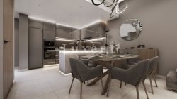 The iconic residential project has 52 floors. The apartments are either fully or partially furnished. Every detail has been carefully designed with an emphasis on quality, luxury and design. Modern bright interiors with stunning views and balconies will delight even the most discerning. The open-plan kitchen and living room offer a pleasant space for gathering with family or friends. On the balcony you can barbecue, relax and watch the beautiful sunsets. Residents will have access to four gardens, a golf simulator, private cinema, lounge, spa and pool, parking, outdoor fitness area and children's playground.
