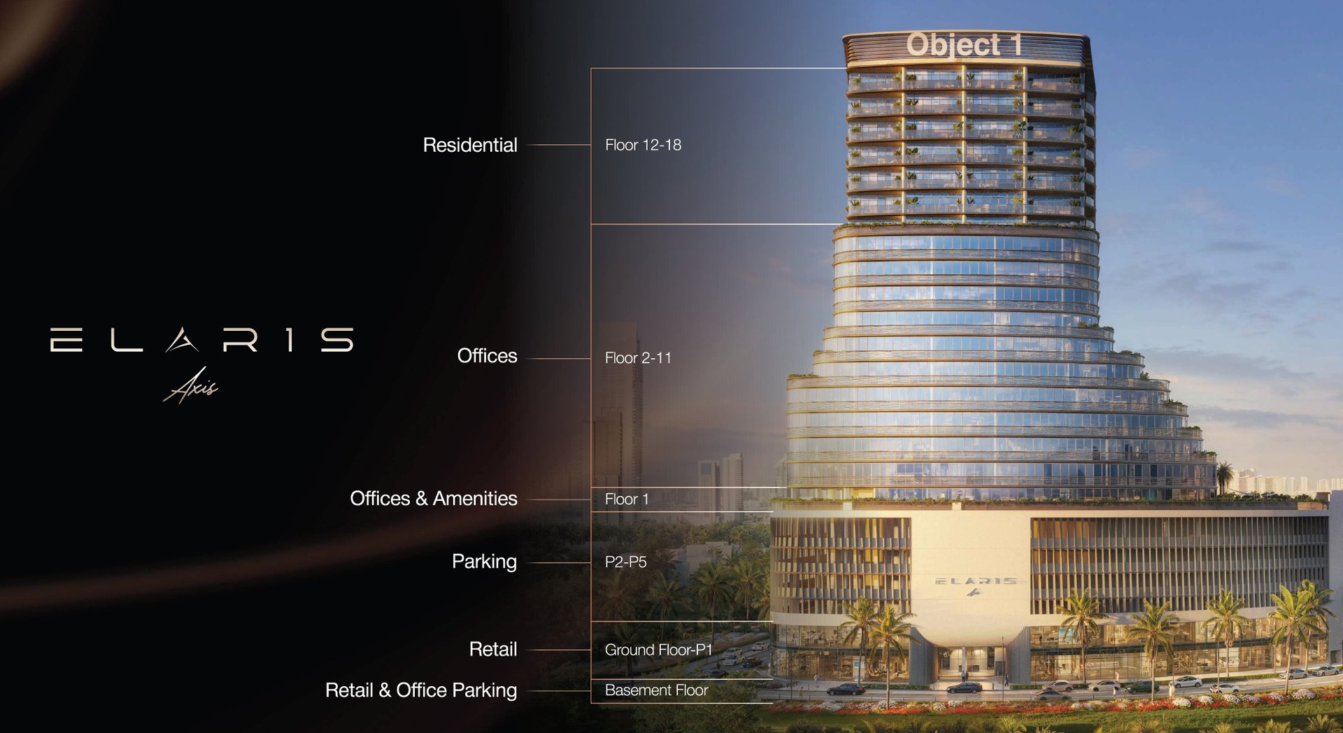 We are offering for sale an exclusive studio in the ELAR1S Axis project by renowned developer Object 1 in the Jumeirah Village Triangle (JVT) area. This is a premium off-plan opportunity suitable for both owner-occupiers and investors. This 24-story tower stands out with its bold asymmetrical facade, maximum use of natural light, and seamless connection between the interior and exterior.