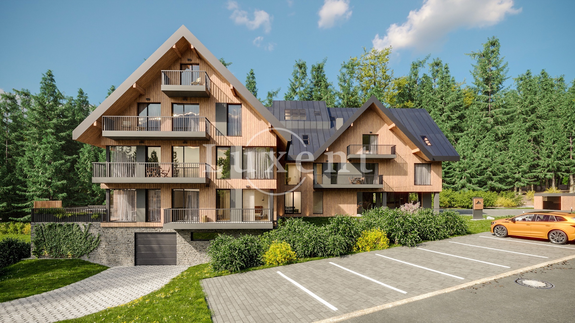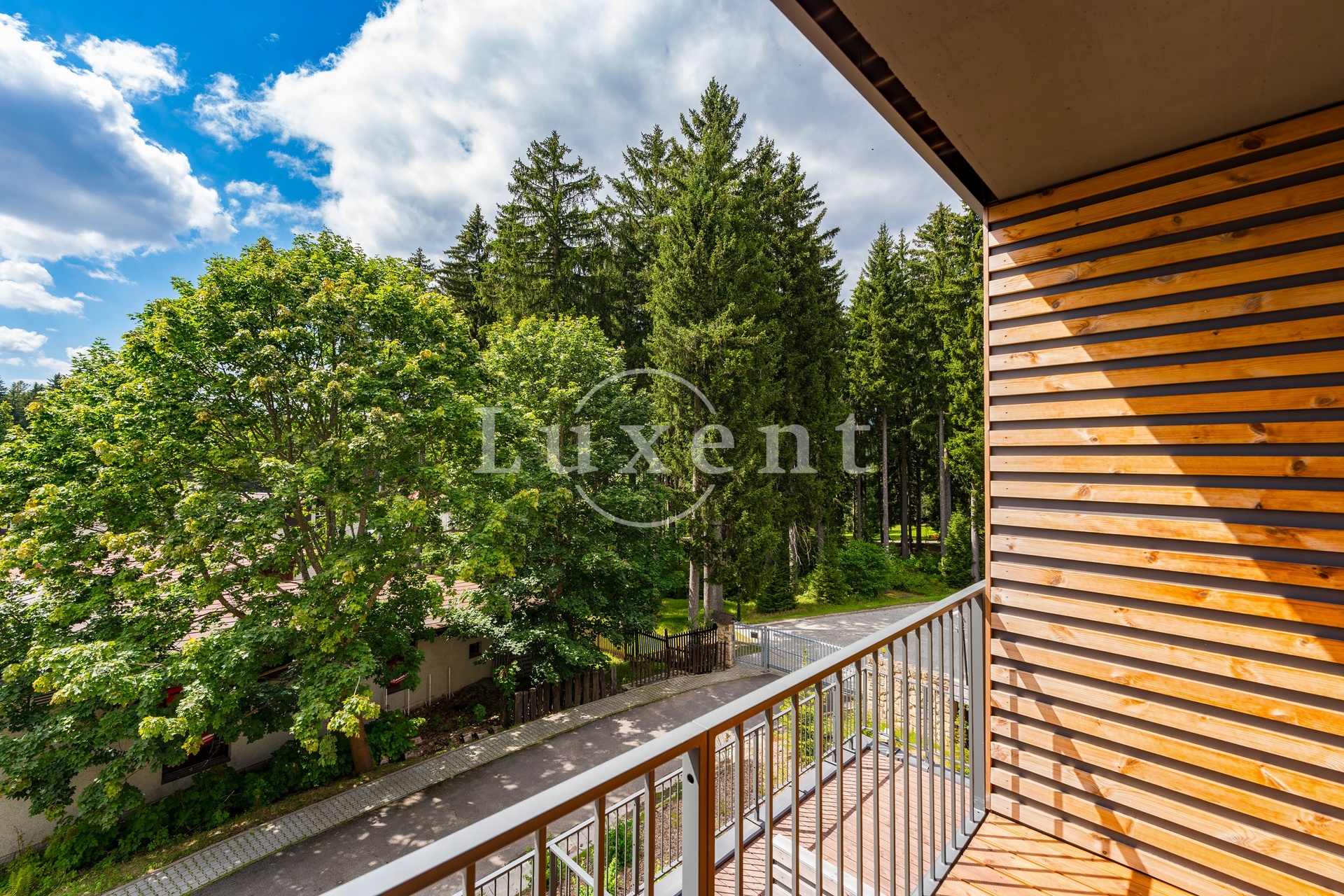 Harrachov Peaks is a luxury project built from quality natural materials with a wellness with sauna and whirlpool and fully equipped fitness. It presents only 16 modern apartments and thus offers an intimate atmosphere in the house for their owners. Its concept will satisfy those interested in second homes in the Giant Mountains as well as investors with the intention of securing their finances or practicing profitable short-term rentals. The offer also includes apartment management including rentals. The HARRACHOV PEAKS project offers a high standard of furnishings - oak floors, wooden terraces, large format tiles in bathrooms and corridors and more. Heating is provided by heat pumps and is distributed by underfloor heating system. The apartment has heat recovery. The energy class is very economical B.
