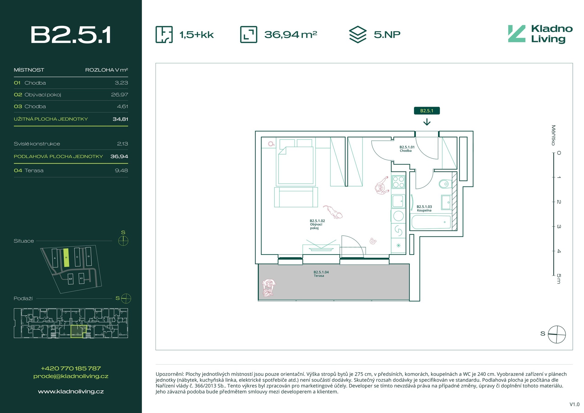 | KL-B126 | 1 + kitchenette | 1st floor | 36 m2 | 38 m2 | No / 3 m2 / No | No | 4 580 000 CZK | Detail |