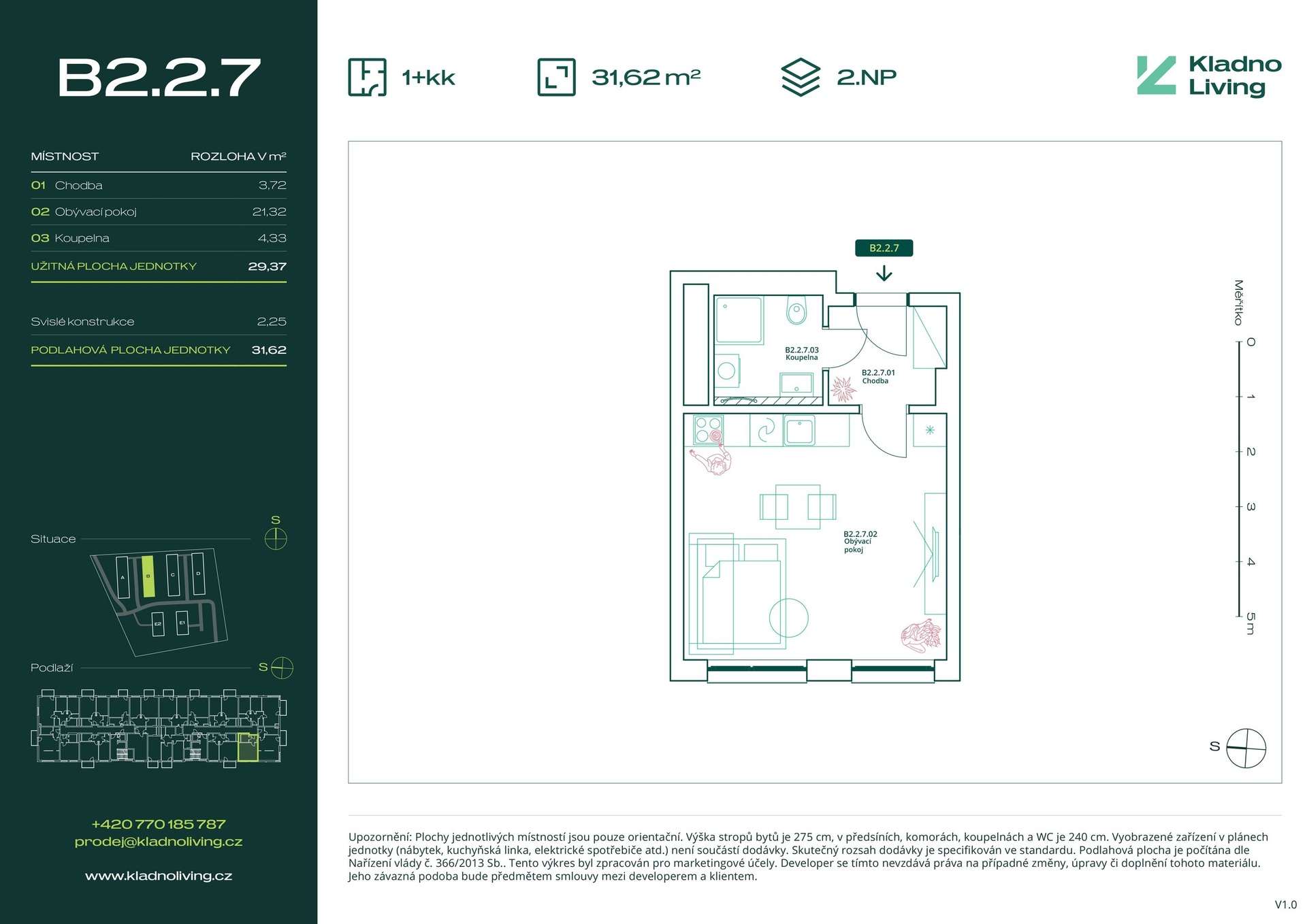 | KL-B227 | 1 + kitchenette | 1st floor | 29 m2 | 32 m2 | No / No / No | No | 3 890 000 CZK | Detail |