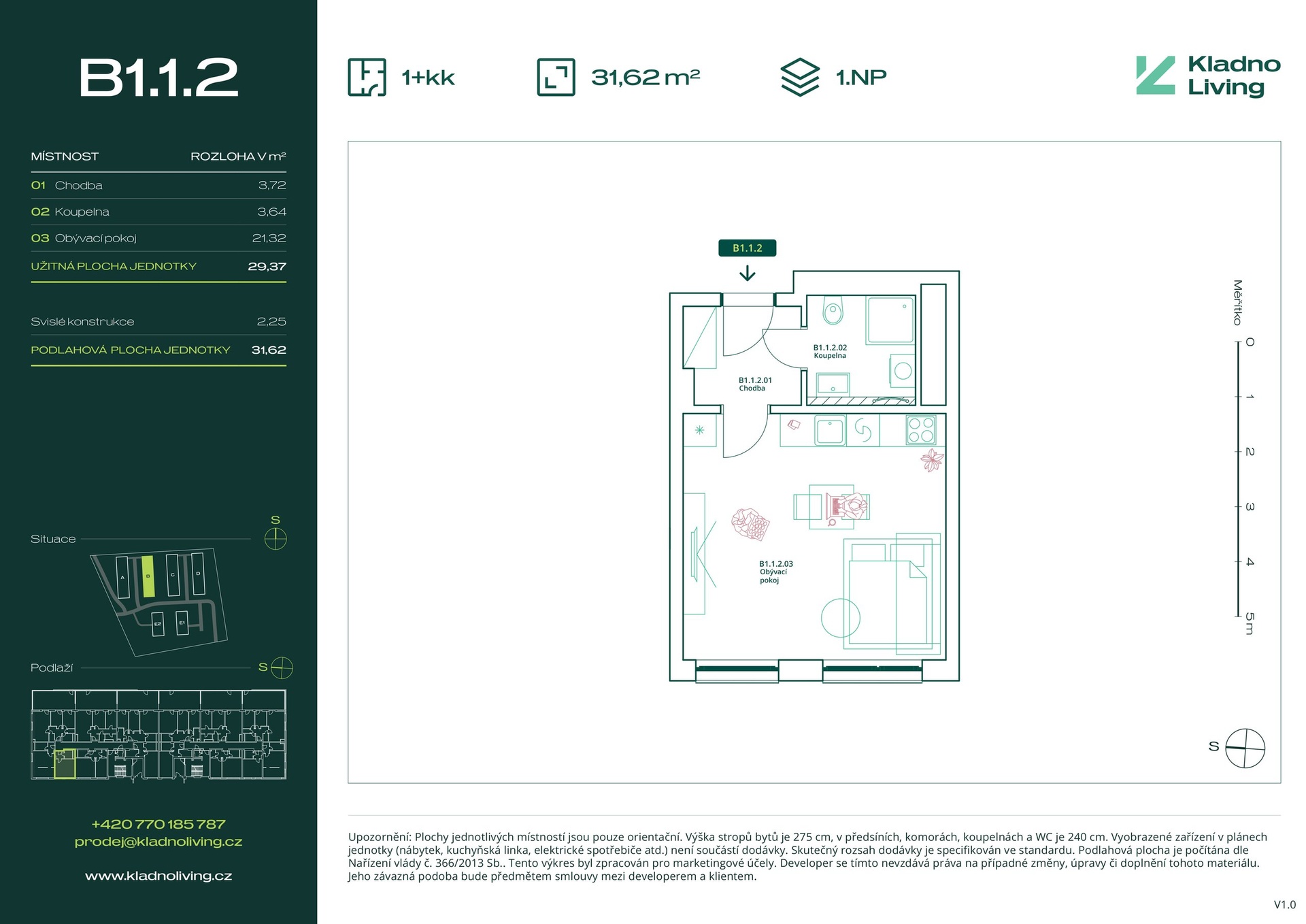 We are offering for sale a modern apartment 1+kt with a floor area of 31,6 sqm in the Kladno Living residential project, which is being built in one of the most attractive locations in the city of Kladno – Kročehlavy. This new development project represents a unique opportunity for those looking for new apartments in Kladno or an investment in real estate with high appreciation potential.