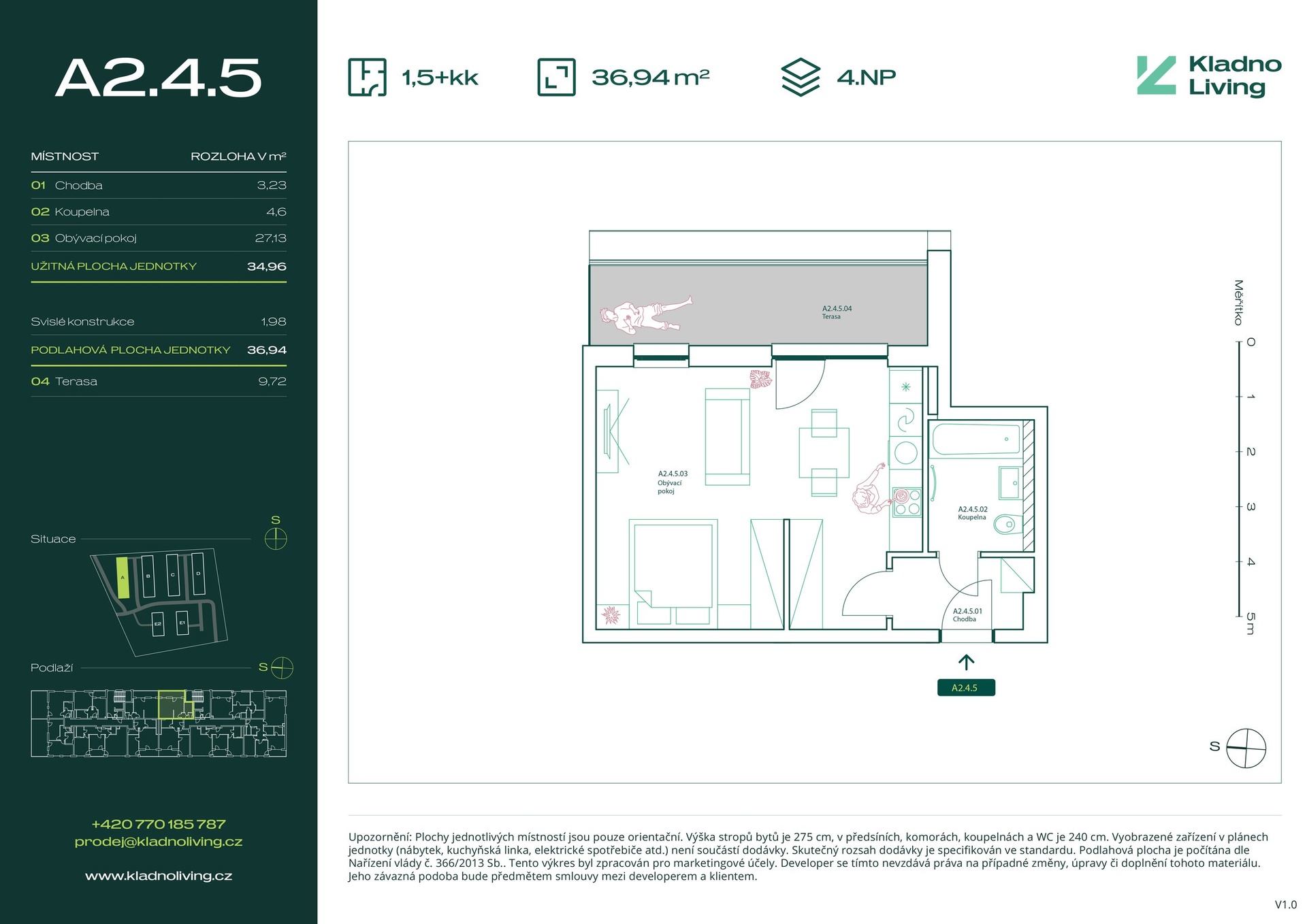 We are offering for sale a modern apartment 1+kt with a floor area of 36,9 sqm and a terrace of 9,7 sqm in the Kladno Living residential project, which is being built in one of the most attractive locations in the city of Kladno – Kročehlavy. This new development project represents a unique opportunity for those looking for new apartments in Kladno or an investment in real estate with high appreciation potential.