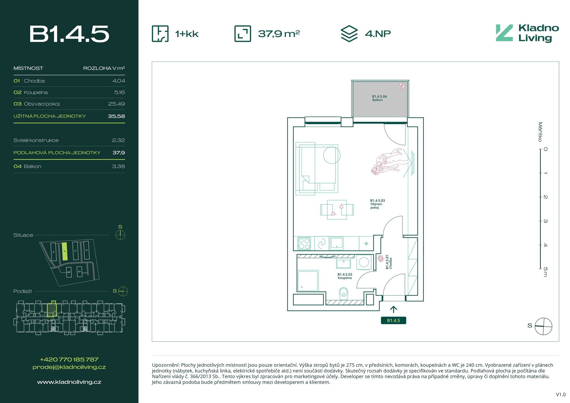 | KL-B126 | 1 + kitchenette | 1st floor | 36 m2 | 38 m2 | No / 3 m2 / No | No | 4 580 000 CZK | Detail |