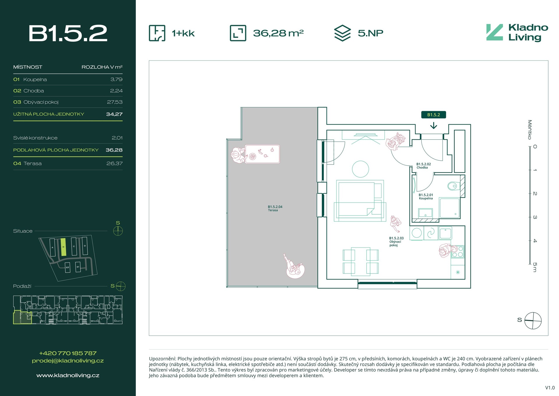 We are offering for sale a modern apartment 1+kt with a floor area of 36 sqm with a terrace 26 sqm, in the Kladno Living residential project, which is being built in one of the most attractive locations in the city of Kladno – Kročehlavy. This new development project represents a unique opportunity for those looking for new apartments in Kladno or an investment in real estate with high appreciation potential.
