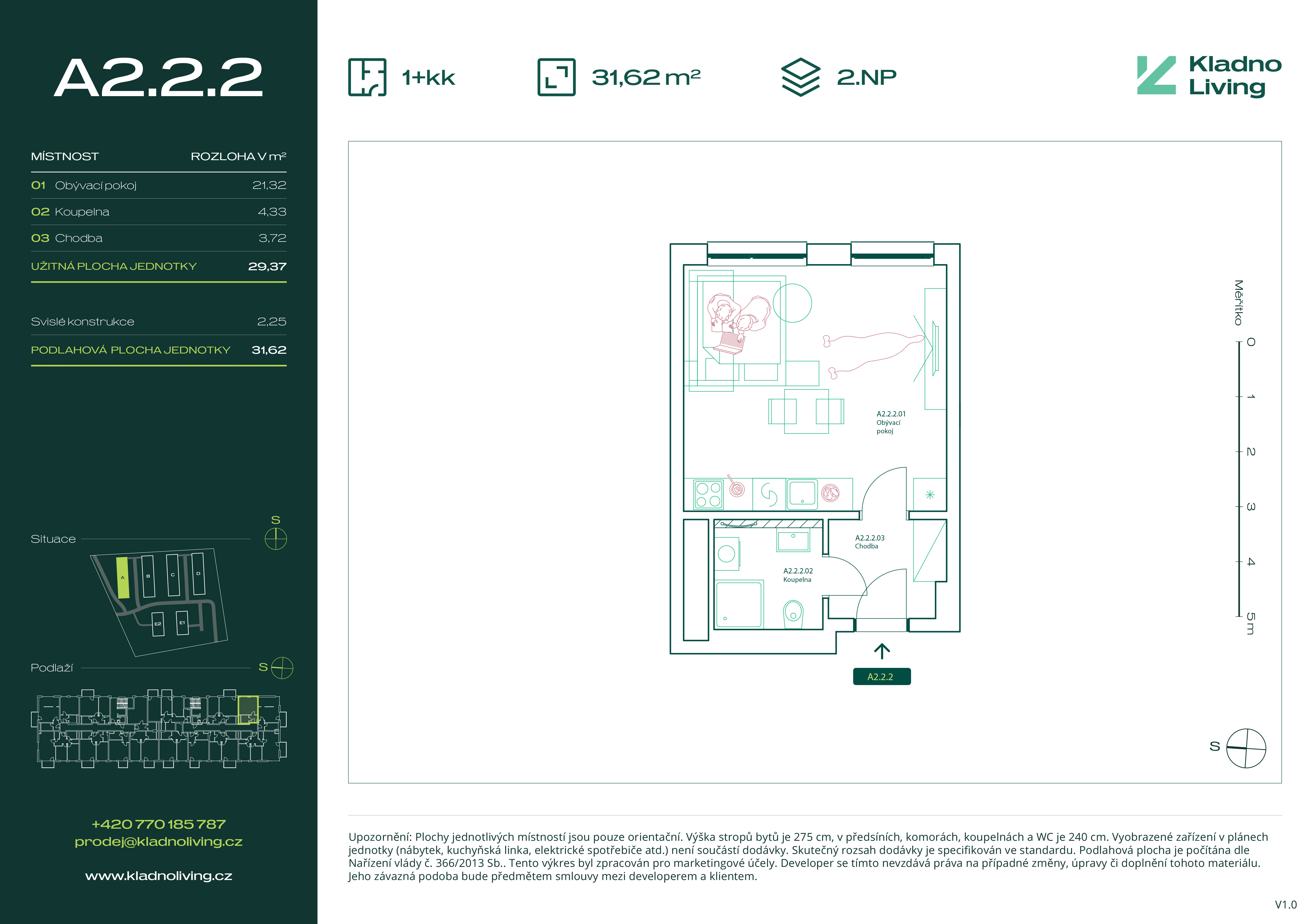 | KL-A122 | 2 + kitchenette | 1st floor | 50 m2 | 54 m2 | No / 4 m2 / No | No | 5 890 000 CZK | Detail |