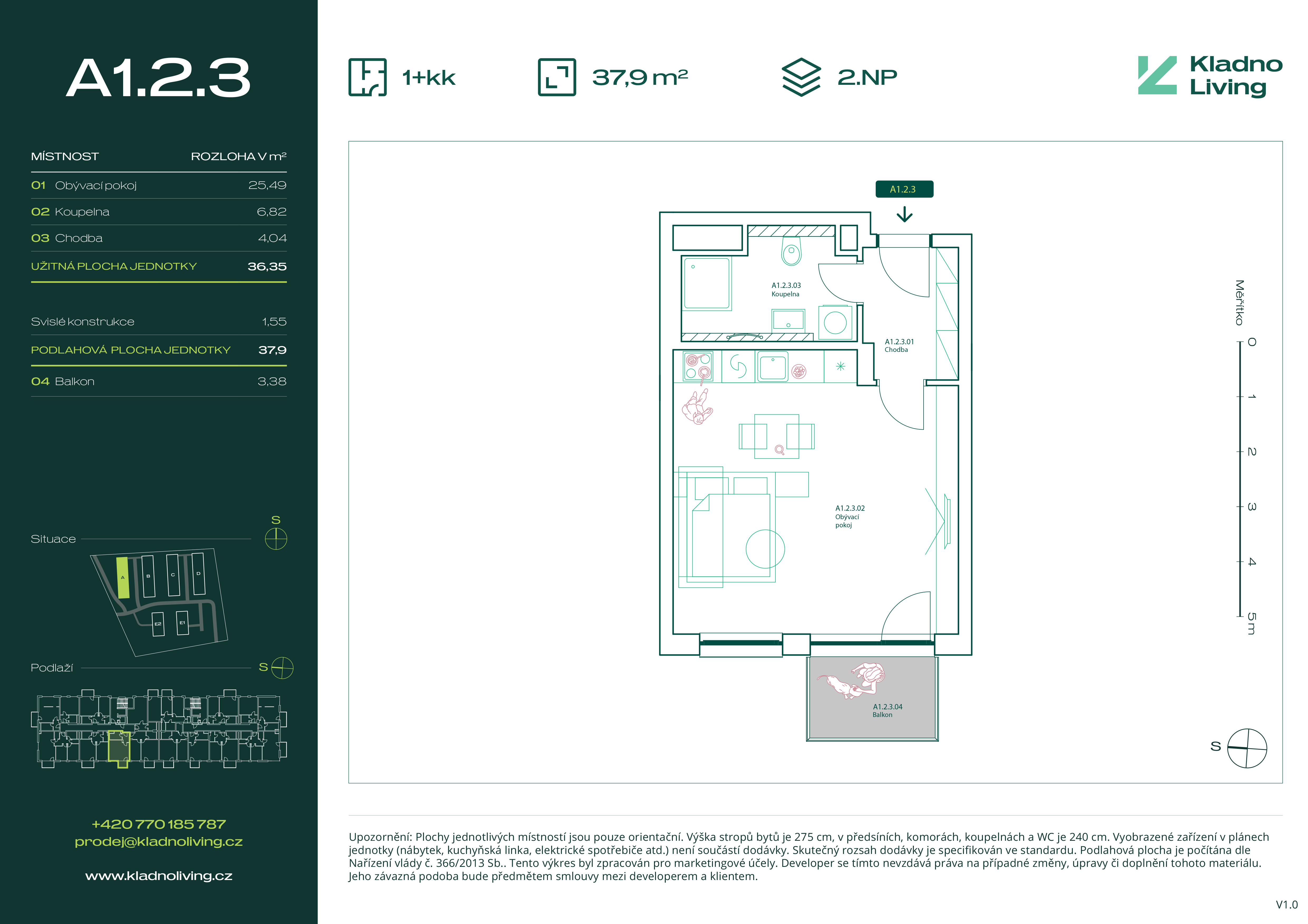 | KL-A226 | 1 + kitchenette | 1st floor | 36 m2 | 38 m2 | No / 3 m2 / No | No | Reserved | Detail |