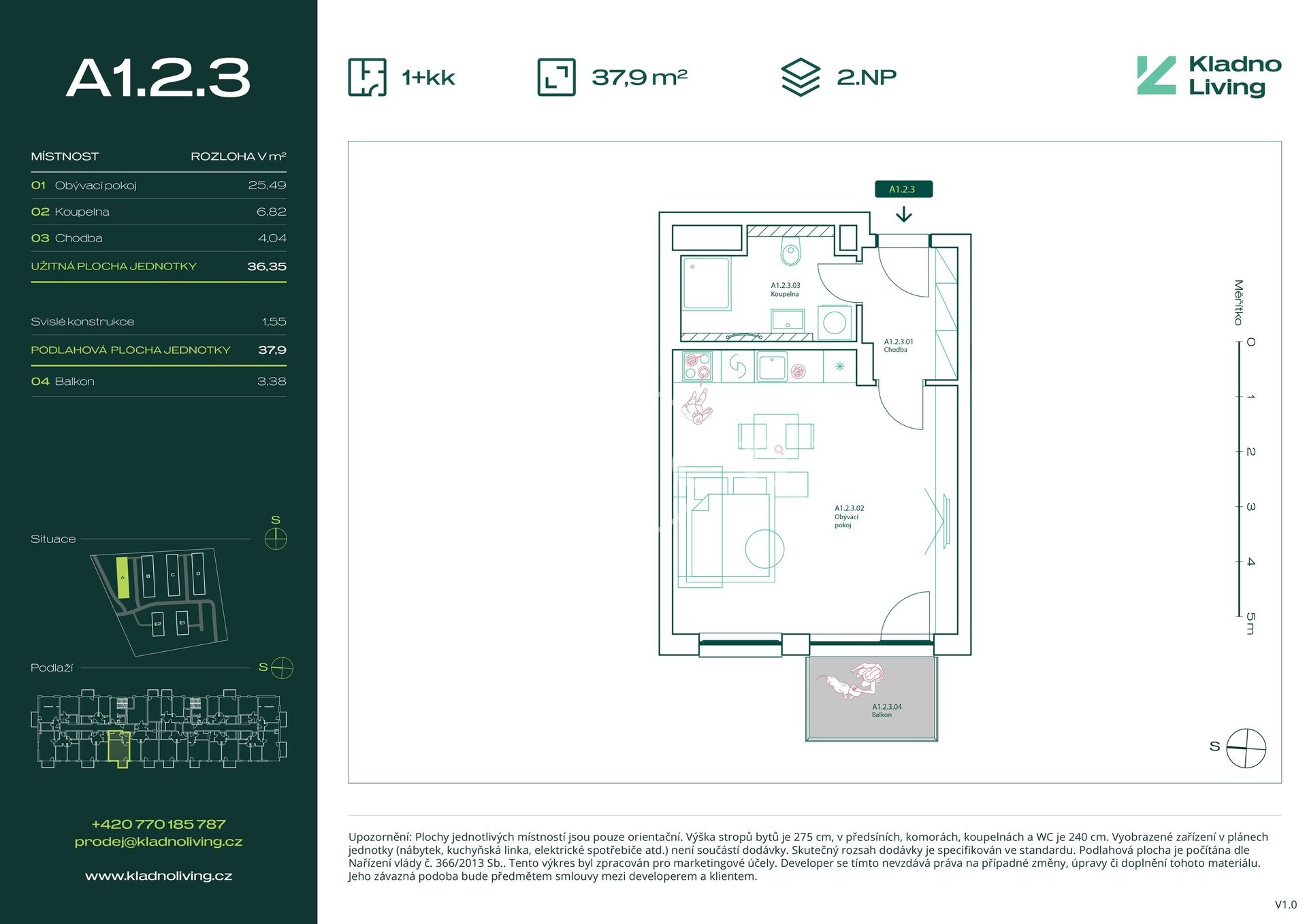 | KL-A125 | 3 + kitchenette | 1st floor | 71 m2 | 76 m2 | No / 5 m2 / No | No | 7 680 000 CZK | Detail |