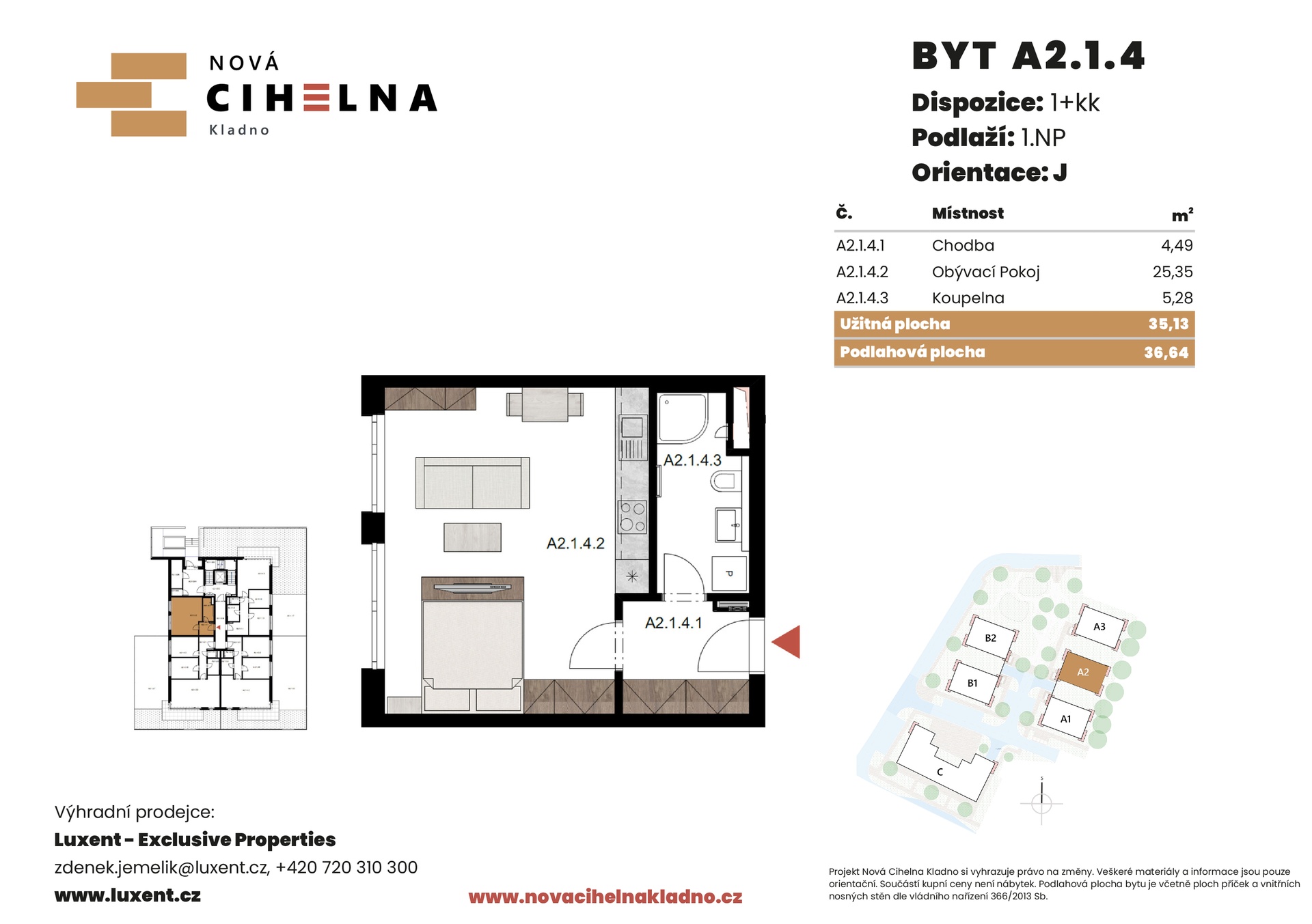 We offer for sale a 1+kt apartment with a floor area of 36.64 sqm in an extremely economical development project Nová Cihelna Kladno, located in the urban area of Kladno - Rozdělov.