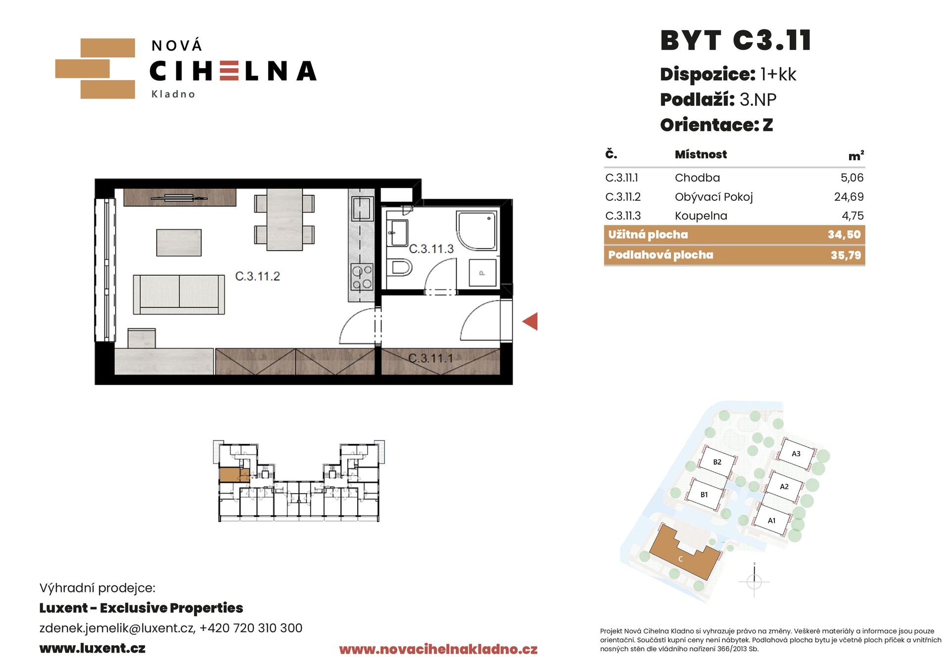 | NC-C201 | 3 + kitchenette | 1st floor | 71 m2 | 75 m2 | No / 13 m2 / No | No | Reserved | Detail |