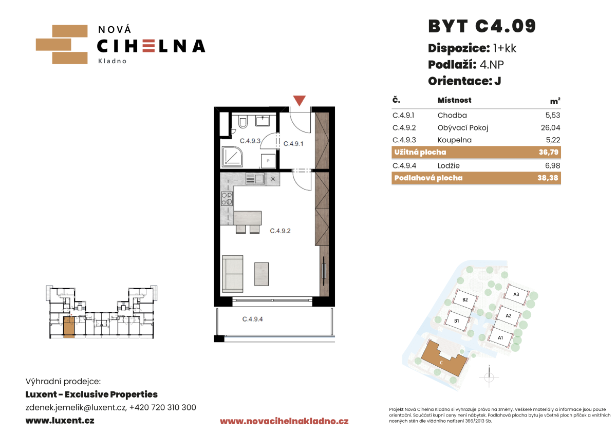 | NC-C204 | 1 + kitchenette | 1st floor | 37 m2 | 38 m2 | No / No / 7 m2 | No | 4 492 610 CZK | Detail |