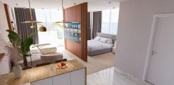 The interior of the apartment has been designed with an emphasis on functionality, quality, and modern technology. The open living space connects the living area, dining room, and kitchenette equipped with top-of-the-line appliances. The main living area opens onto a private balcony with panoramic views of the sea and surrounding nature. The elegant bathroom is equipped with high-quality sanitary ware and well-designed storage space. Comfort is ensured by air conditioning and connection to the residence's central systems.