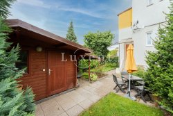 The apartment with a real area of 62 sqm (registered area of 54.6 sqm) is situated on the ground floor with its own entrance from the adjacent and maintained garden of 150 sqm in exclusive use. In the garden there is a garden house and a summer sitting area.