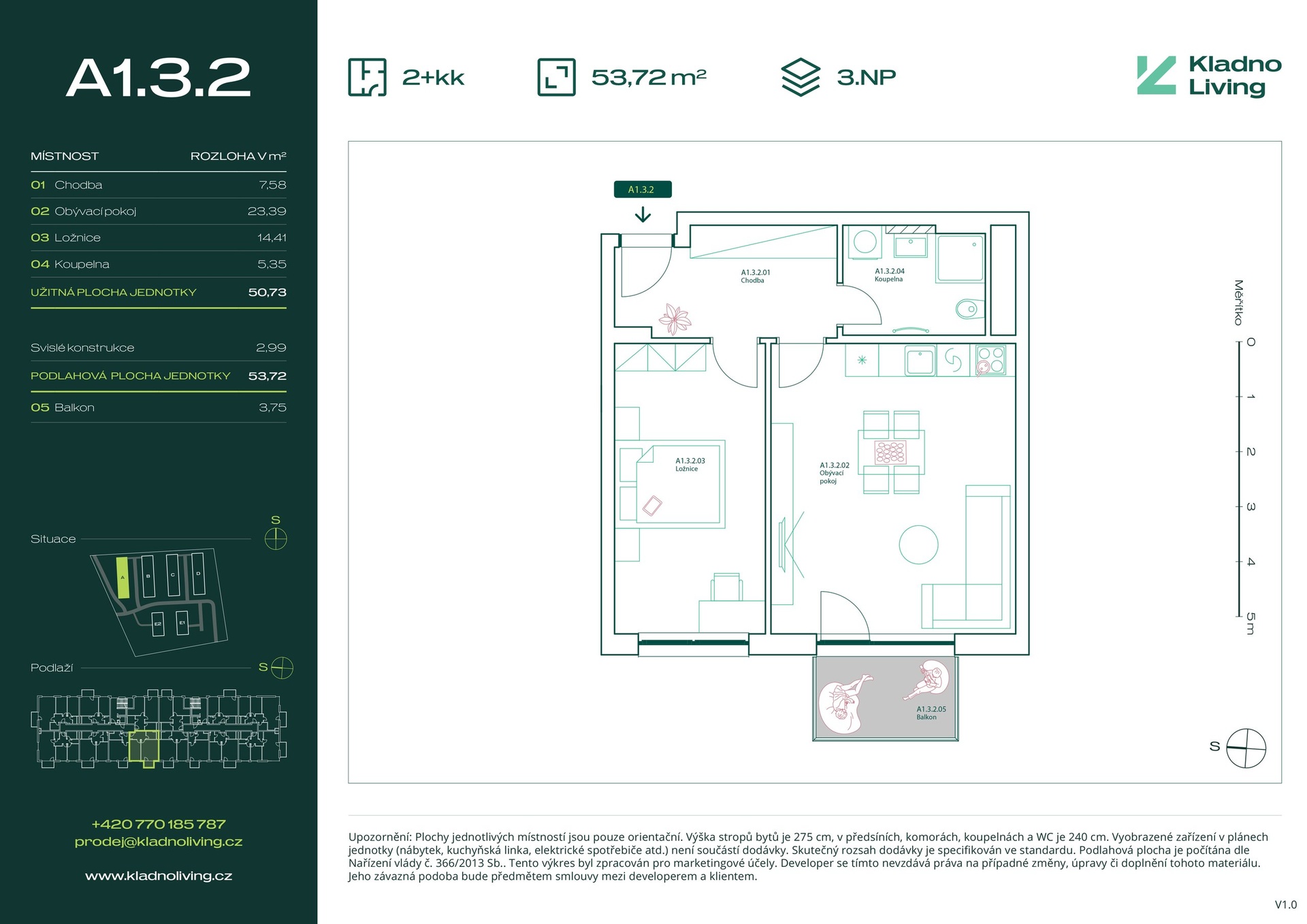 | KL-A122 | 2 + kitchenette | 1st floor | 50 m2 | 54 m2 | No / 4 m2 / No | No | Reserved | Detail |