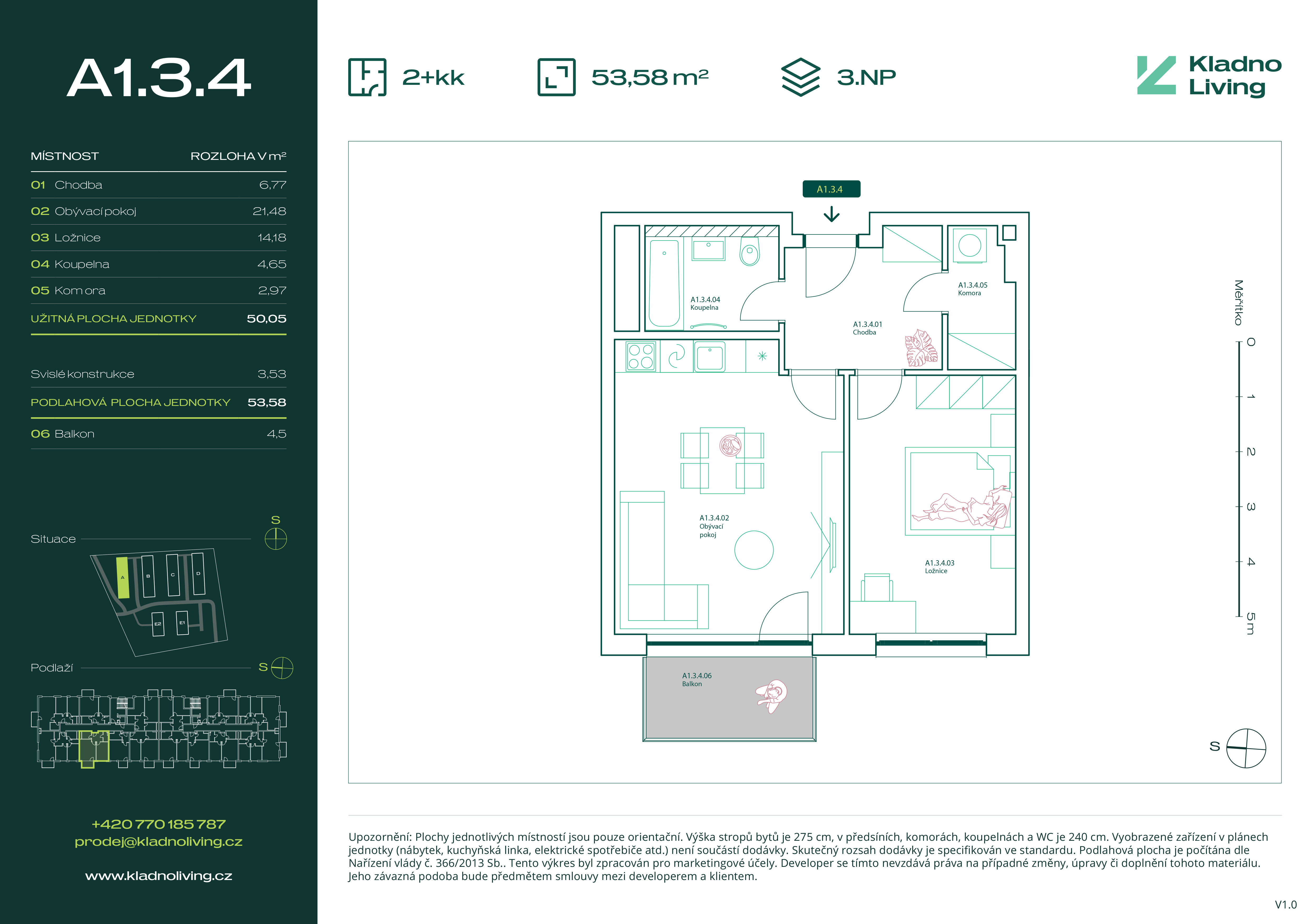 | KL-A134 | 2 + kitchenette | 2nd floor | 50 m2 | 54 m2 | No / 5 m2 / No | No | Reserved | Detail |