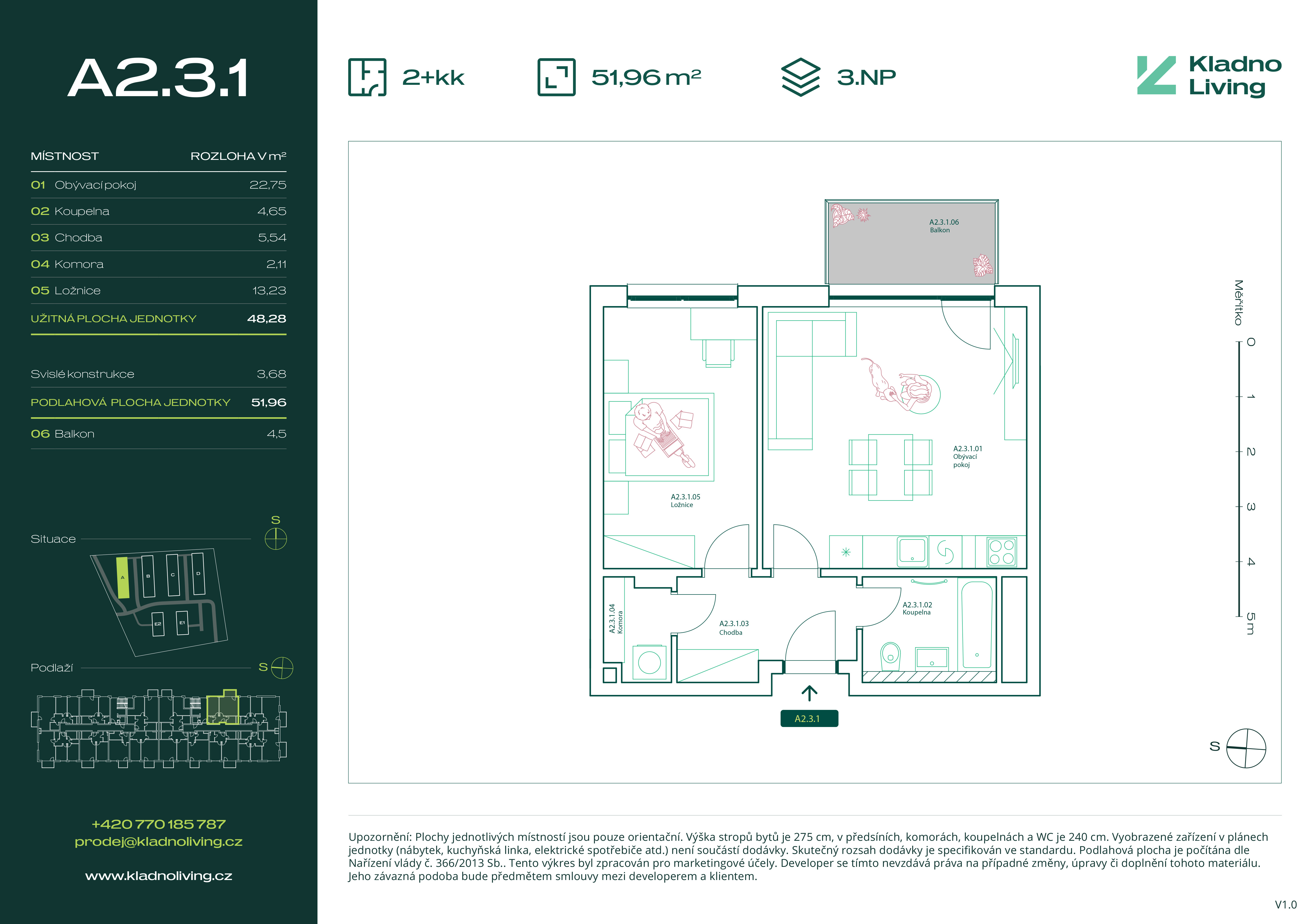 | KL-A128 | 2 + kitchenette | 1st floor | 48 m2 | 52 m2 | No / 5 m2 / No | No | Reserved | Detail |