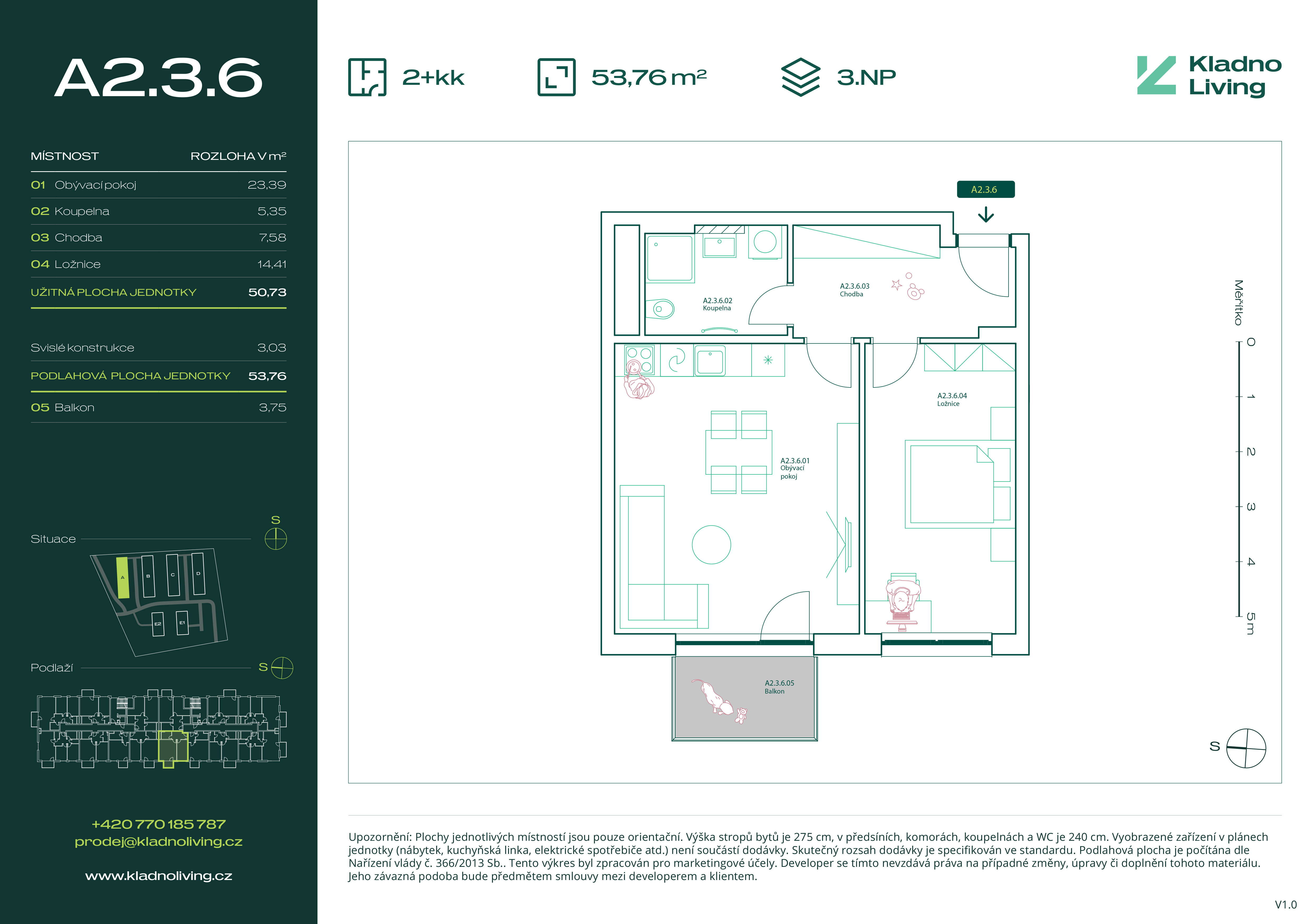 | KL-A134 | 2 + kitchenette | 2nd floor | 50 m2 | 54 m2 | No / 5 m2 / No | No | Reserved | Detail |