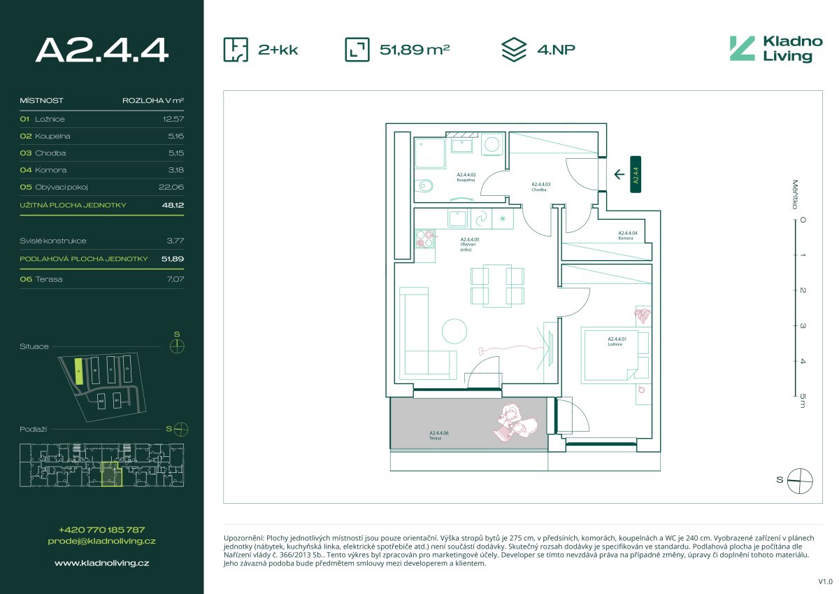 | KL-B224 | 2 + kitchenette | 1st floor | 50 m2 | 54 m2 | No / 5 m2 / No | No | 5 880 000 CZK | Detail |