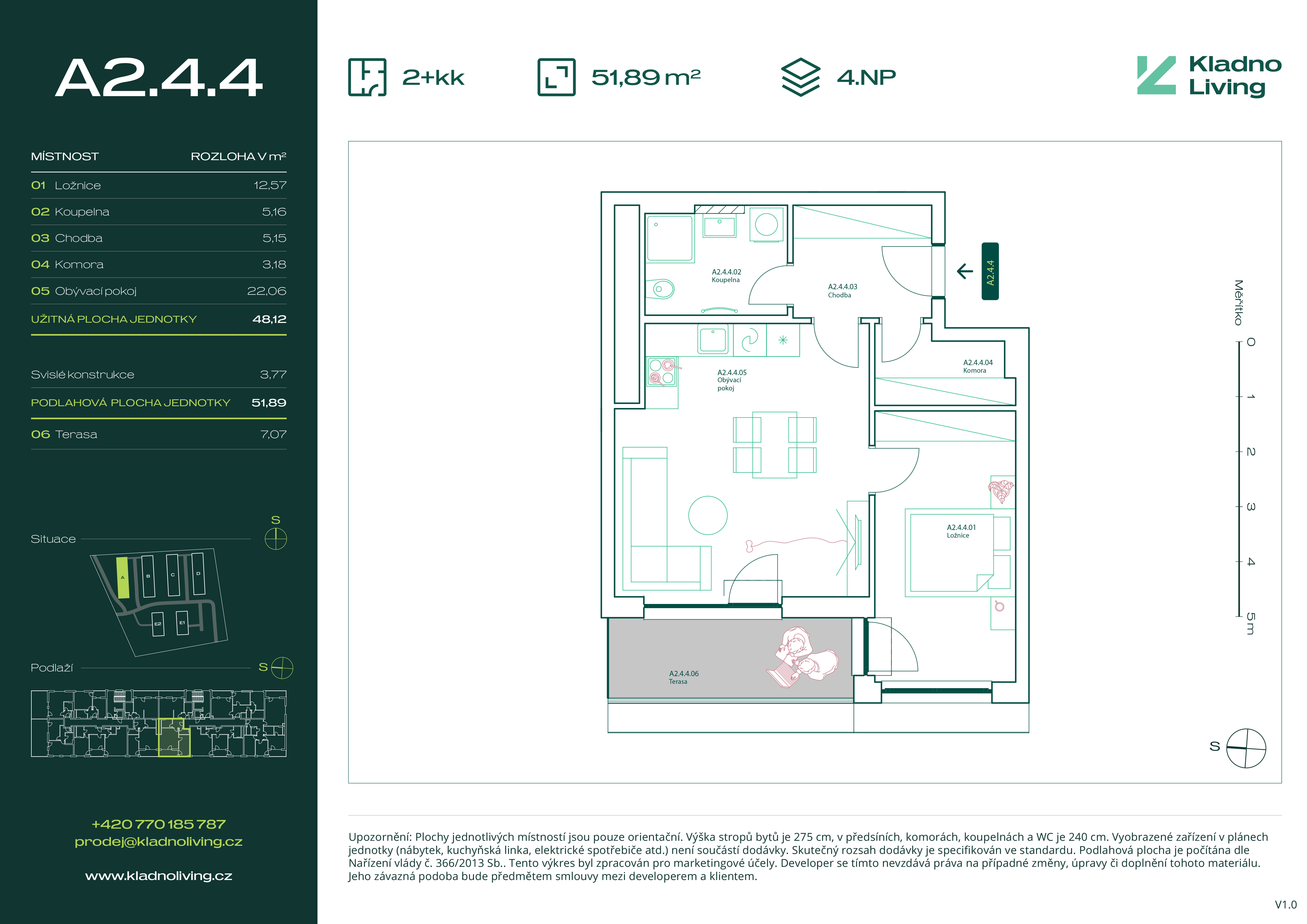 Sale of an apartment 2+kt/T, 51,9 sqm, in the Kladno Living residence, Kladno – Kročehlavy
