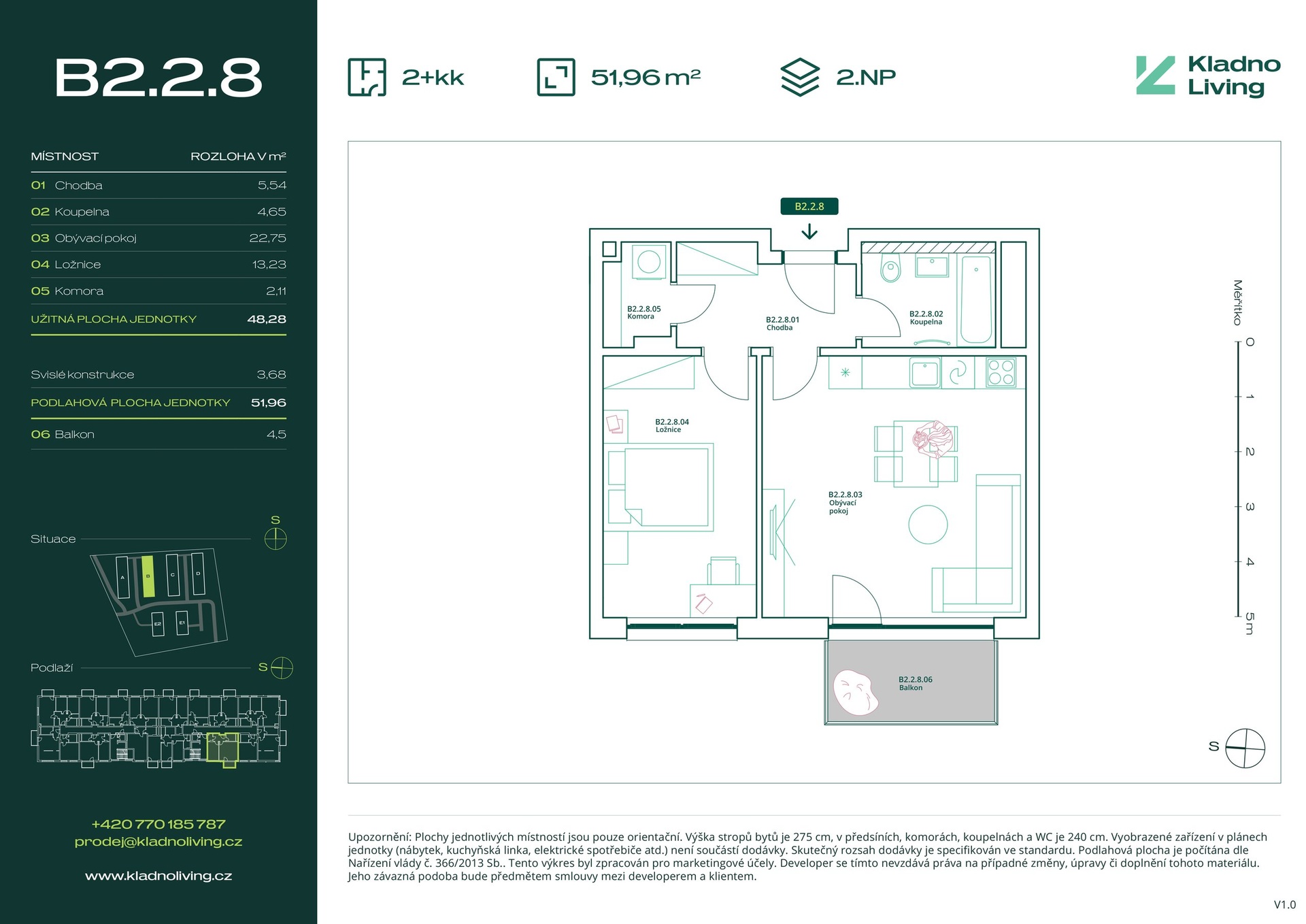 | KL-A128 | 2 + kitchenette | 1st floor | 48 m2 | 52 m2 | No / 5 m2 / No | No | Reserved | Detail |