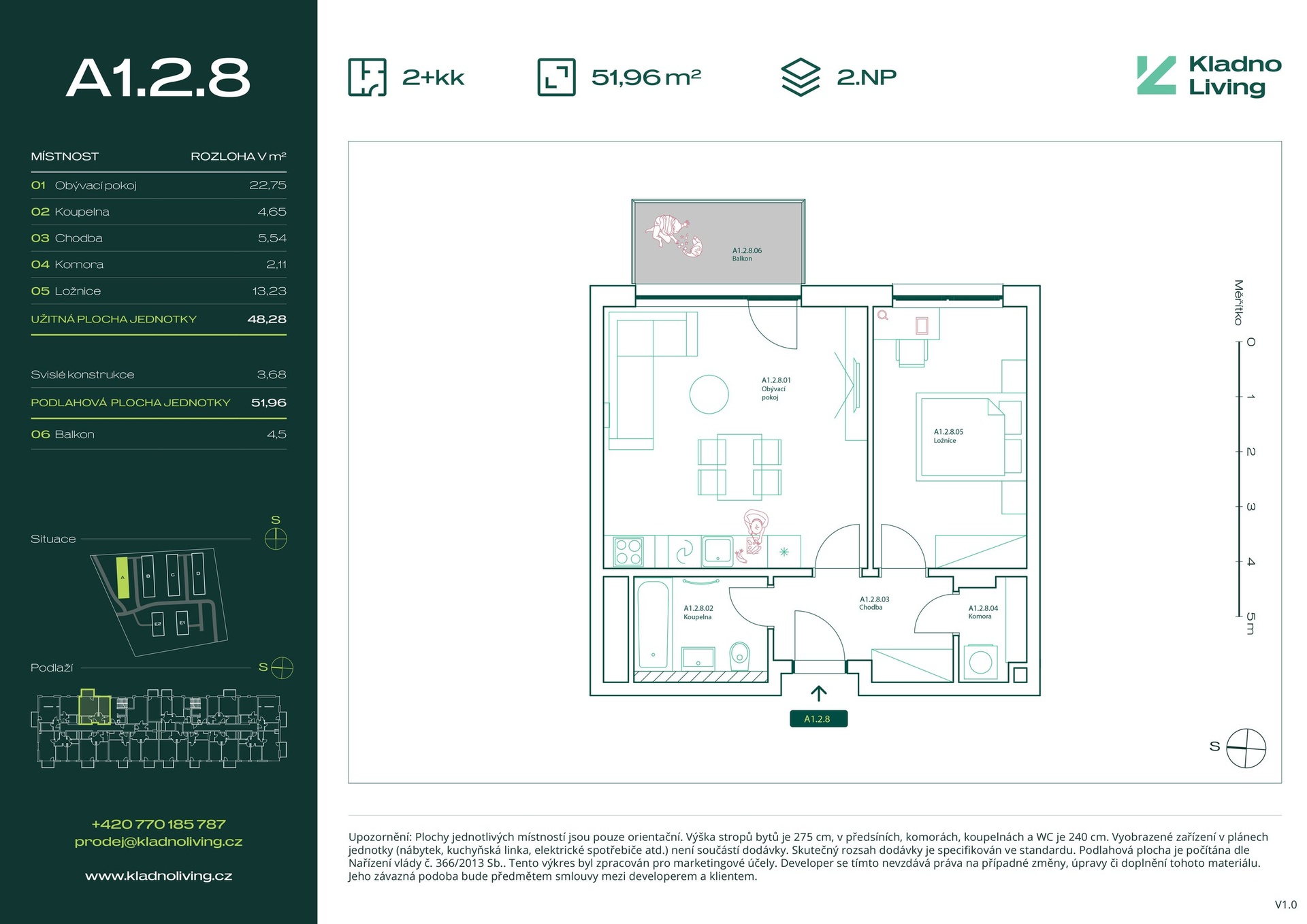 | KL-A122 | 2 + kitchenette | 1st floor | 50 m2 | 54 m2 | No / 4 m2 / No | No | Reserved | Detail |