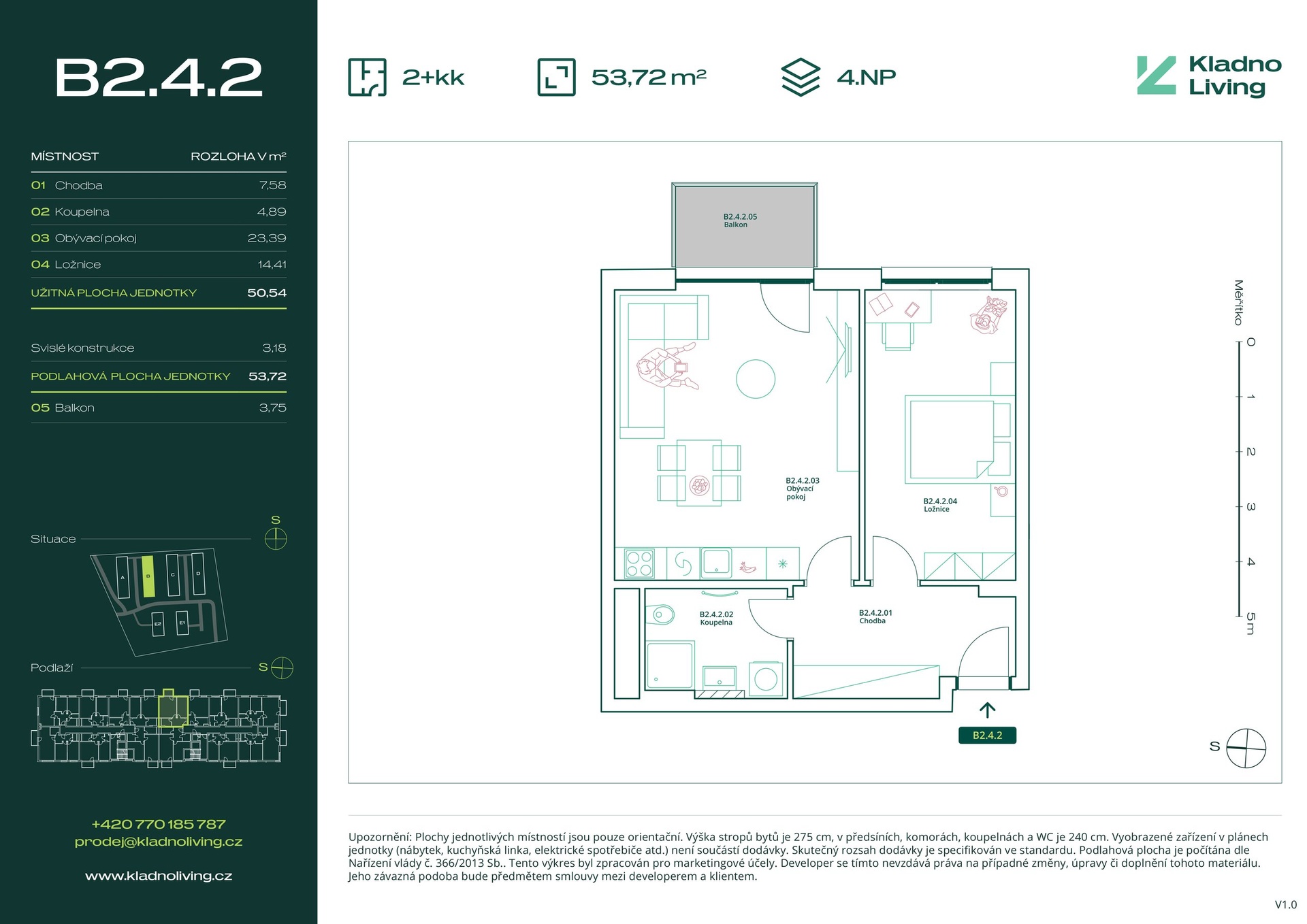 | KL-A122 | 2 + kitchenette | 1st floor | 50 m2 | 54 m2 | No / 4 m2 / No | No | Reserved | Detail |
