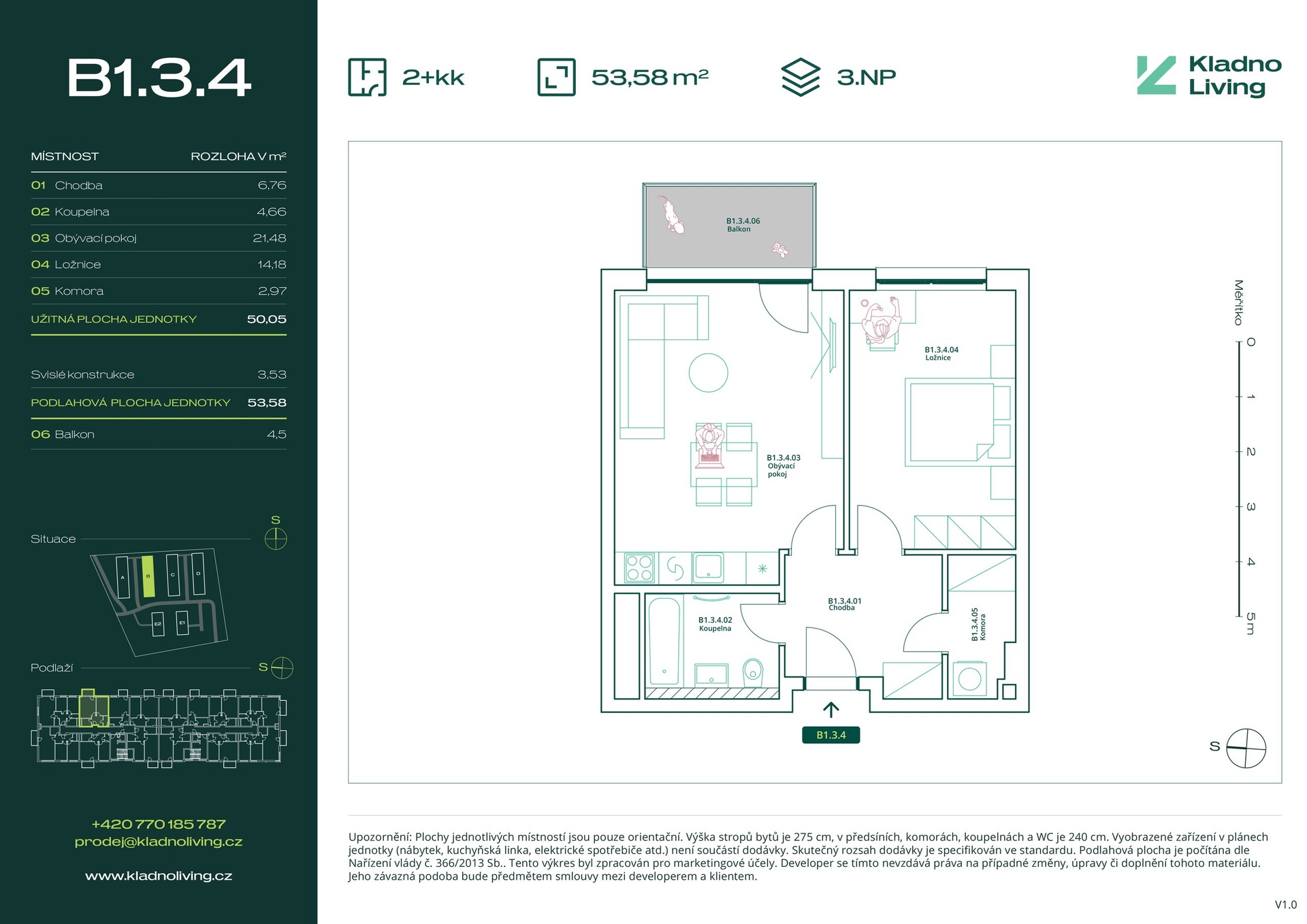 | KL-A122 | 2 + kitchenette | 1st floor | 50 m2 | 54 m2 | No / 4 m2 / No | No | Reserved | Detail |