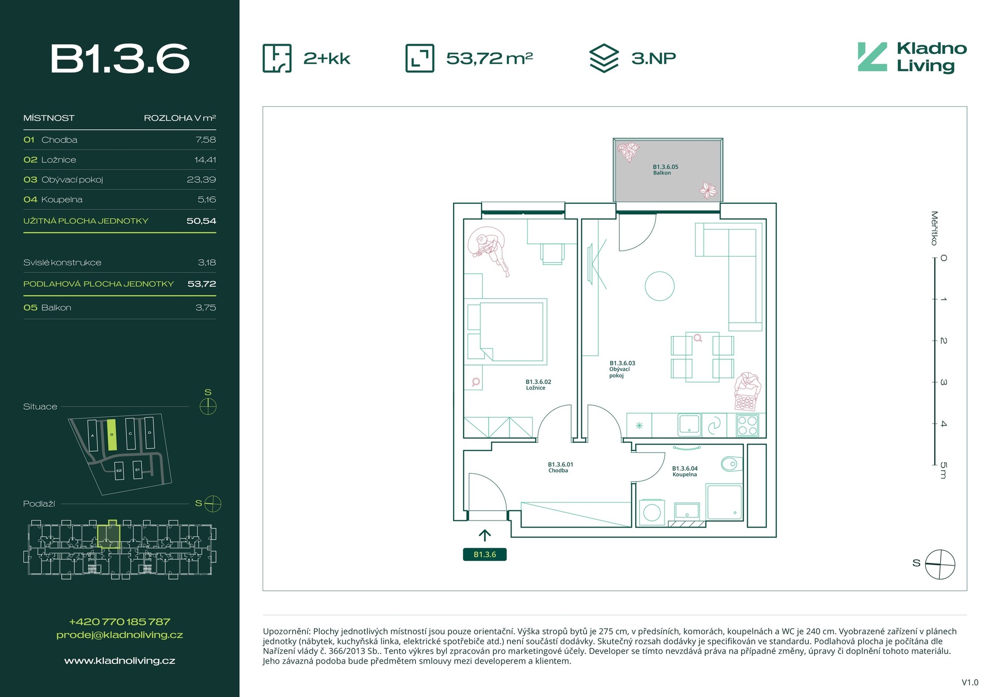 | KL-B136 | 2 + kitchenette | 2nd floor | 51 m2 | 54 m2 | No / 4 m2 / No | No | 5 940 000 CZK | Detail |